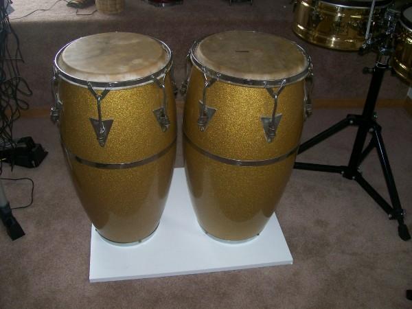 http://s1192.photobucket.com/albums/aa330/starbrite2/?action=view¤t=CarlosPatataValdez.jpg They are a set of three vintage 1978 white LP fiberglass congas hand-crafted in Palisades Parks, New Jersey, USA (11" Quinto, 11"3/4 Conga and 12"1/2 Tumbadora each are 28.5 inches tall). I bought them new in 1978 and these drums are clean and all the original hardware is pristine and free of corrosion. Each drum comes with the original emblem marked by Martin Cohen, the founder of Latin Percussion. Each piece of hardware is stamped with the LP insignia and has been recently cleaned and oiled. The set has three new synthetic Evans heads which offer incredible durability, weather resistant and tuning stability. The only slight imperfections are some very small scuff marks around the lug area due to the vintage style tuning system of bolts and washers. As you can see on the photos the wear and tear is minimal. These drums are in spectacular condition considering their age.