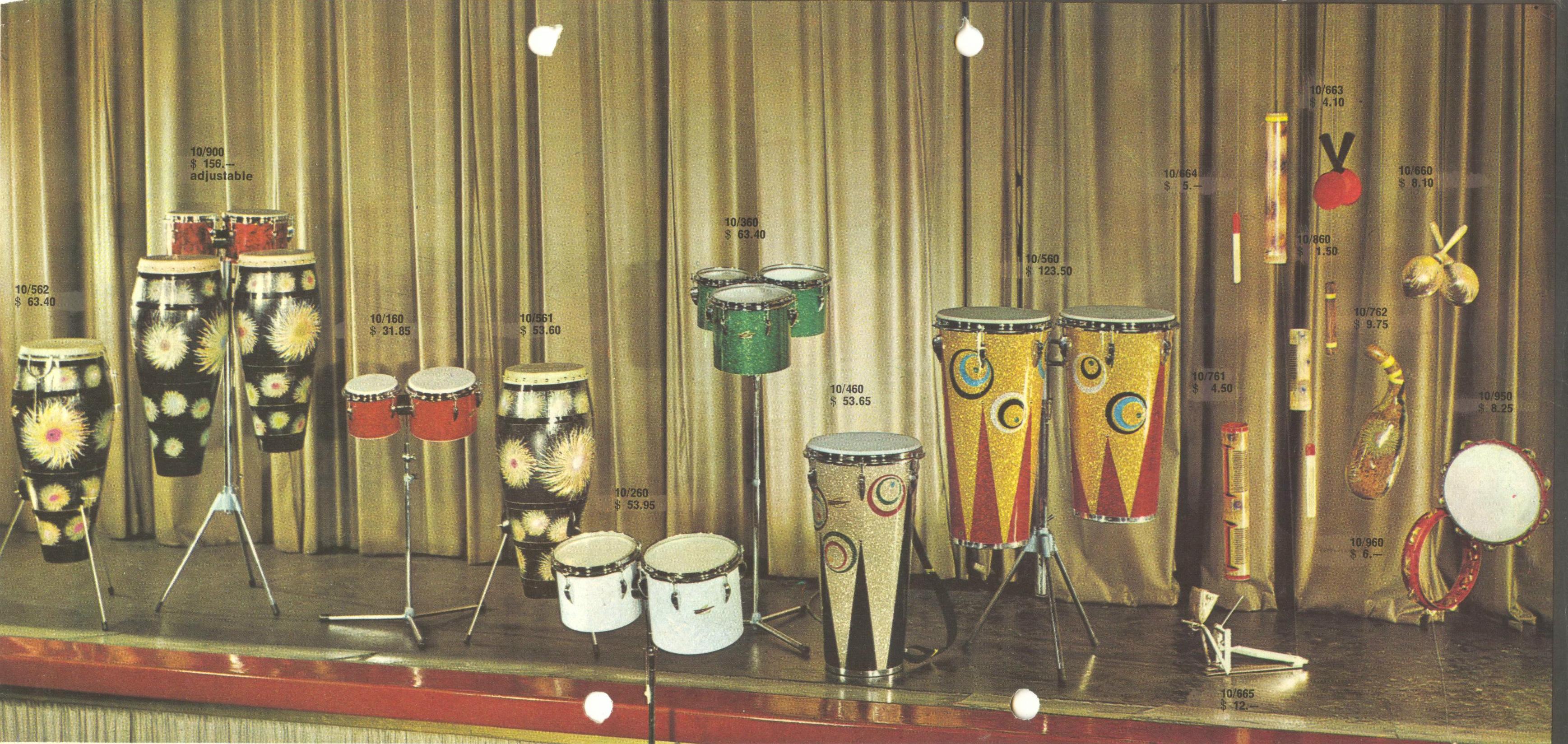 Thomas Altmann wrote:Dig Karl-Heinz Weimer's cute Latin-Percussion-instruments page (Trixon Drums, Hamburg, Germany). This is the same company that manufactured the conical and elliptical drum sets. This is from a 1960's catalogue.