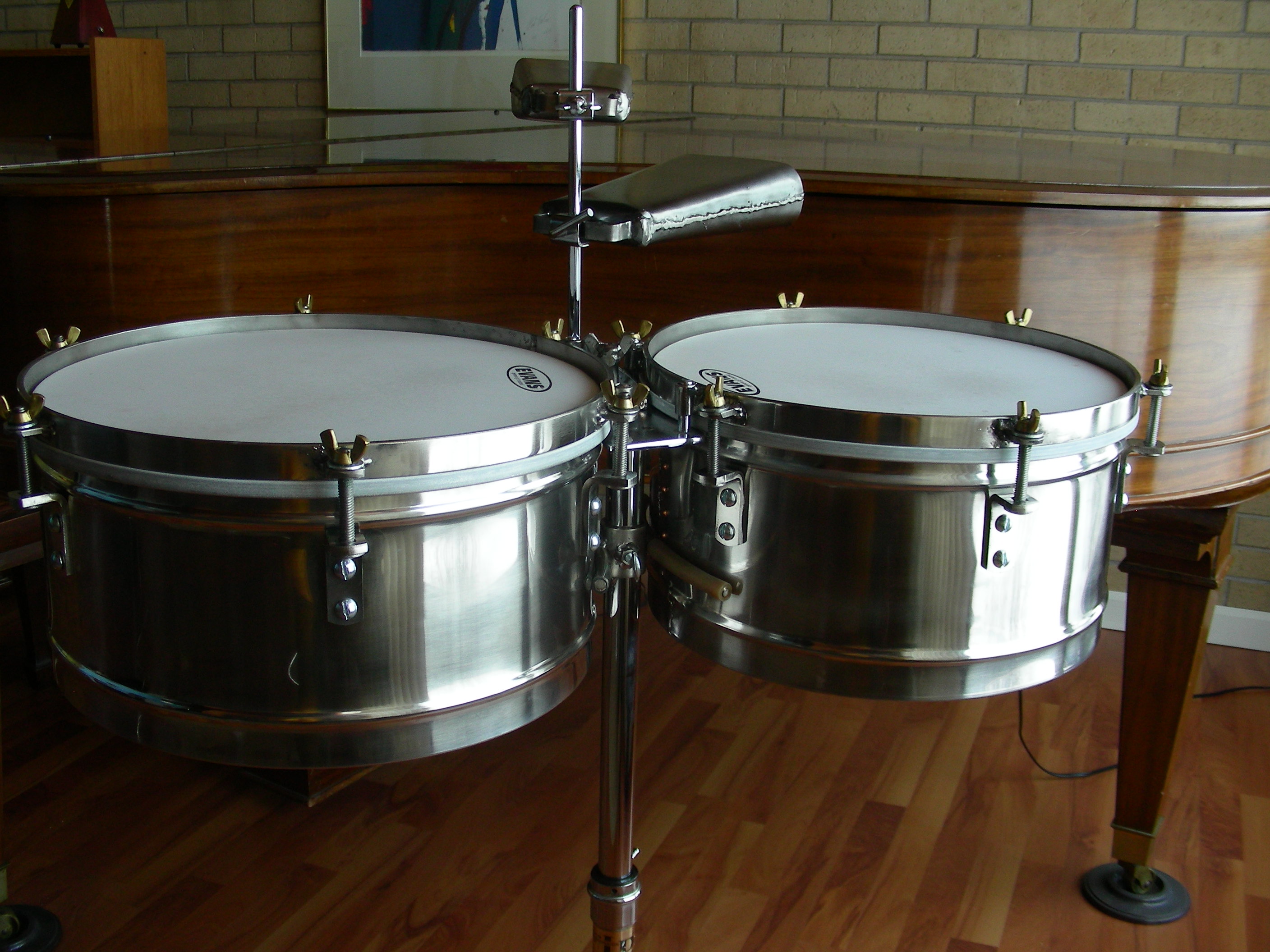 That is a fine set of timbales you have there. I have never taken up the instrument myself as I have more than enough to keep me going with the congas and West African percussion.