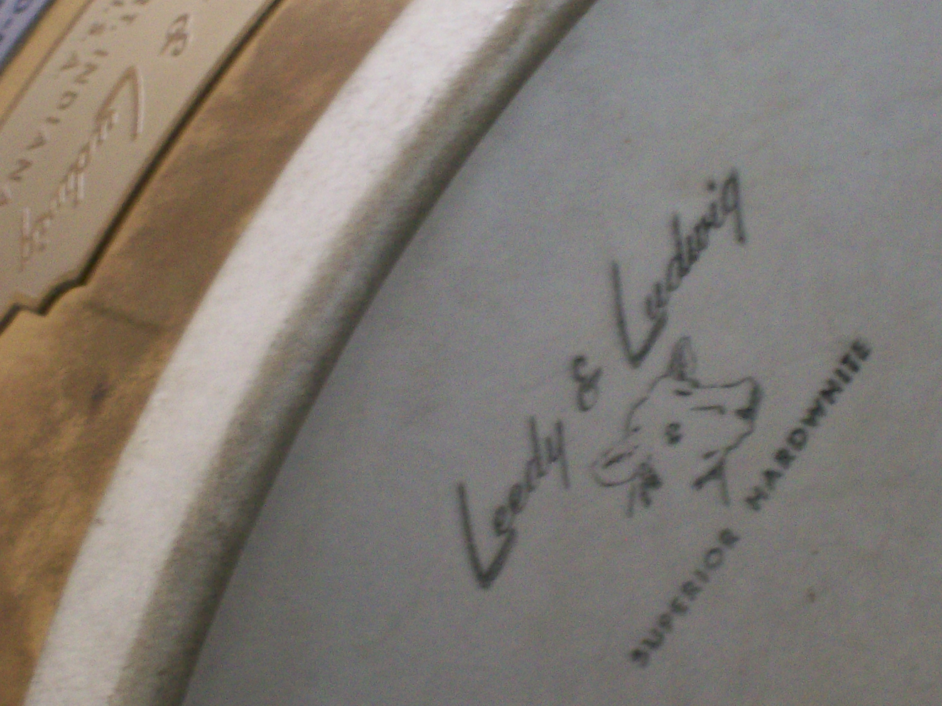 I'm sorry to confess that on the Leedys that I had bought from you, I took off the animal skins. The macho was just finished. I couldn't tune it up anymore. First of all, the rim was out of round, which - I hope - was caused in the transport, and the drum itself isn't perfectly round anymore, either. In addition, in the older days the drums tended to be wider, so the skins were less floating than today. Now, if the skin hoop is attached closer to the drum shell, when you tune the drum, you actually stretch more the part of the head down below the edge than the playing surface.