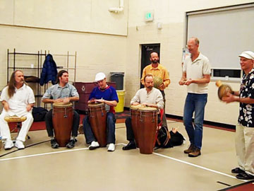 http://dl.dropbox.com/u/10287309/school/bembe.MP4 Recorded on a flip, and the viewer was close enough to get muddled mic overdrive. But, I liked our energy and intensity. I hear myself singing flat at times, and the lead drummer taking more liberties with flams than I like, but I'm still proud of where we are now. I love Thom's Iya, and Dave's middle drum/akpon/coro. The two Africans randomly coming in to dance during the Ogun sequence were in the closing act. They're two of the best musicians I've ever seen, so I was really honored when they danced to our tune.