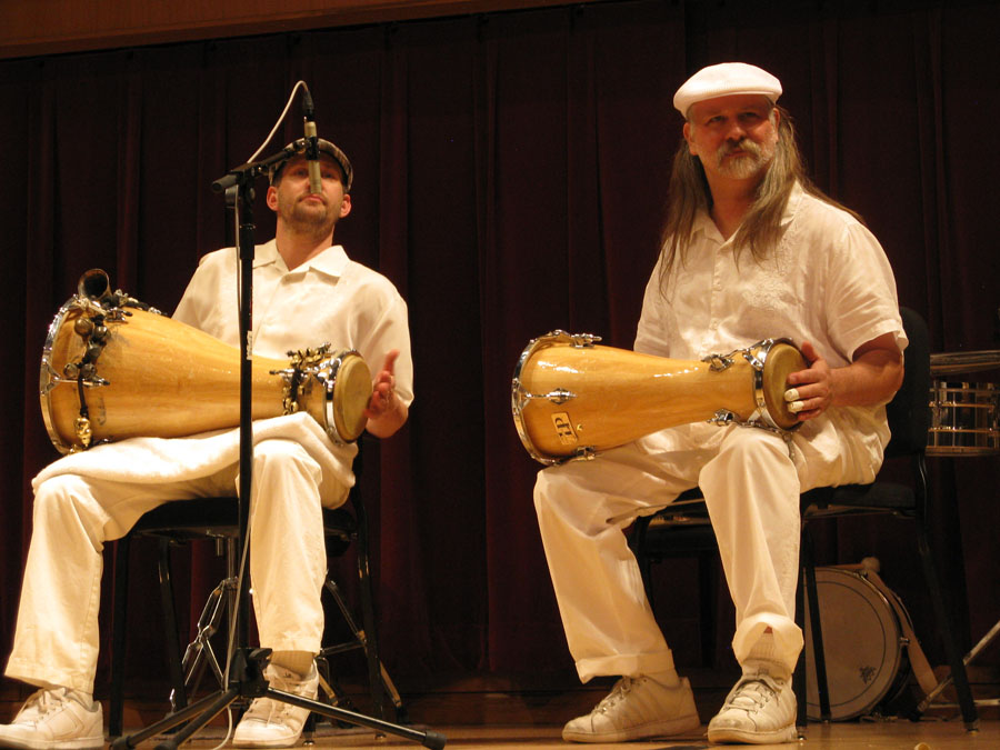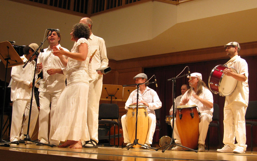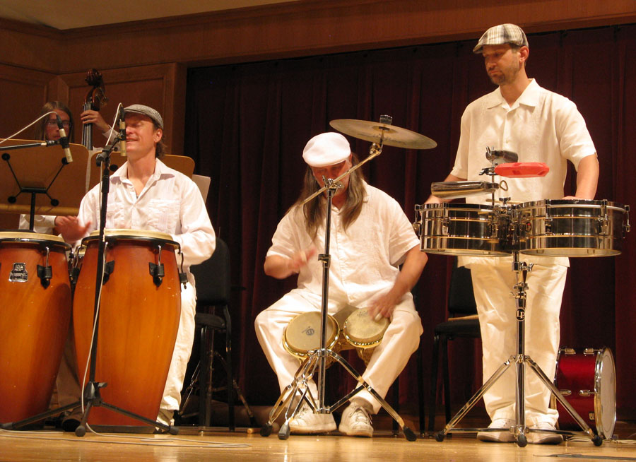 Mike had his percussion recital for music college yesterday. Rey Gonzalez danced for Ellegua and Chango, as well as leading the song on Guaguanco and Comparsa. It was a grand time! We were exhausted from the rehearsals and school started back the day of the performance!