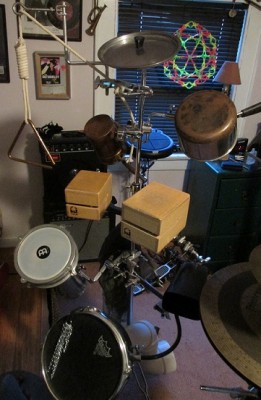 novelty percussion to be less appropriate. And that is what triggered me to bring the box drum into the act, as well as some 'drum set' drums & cymbals, played with brushes.