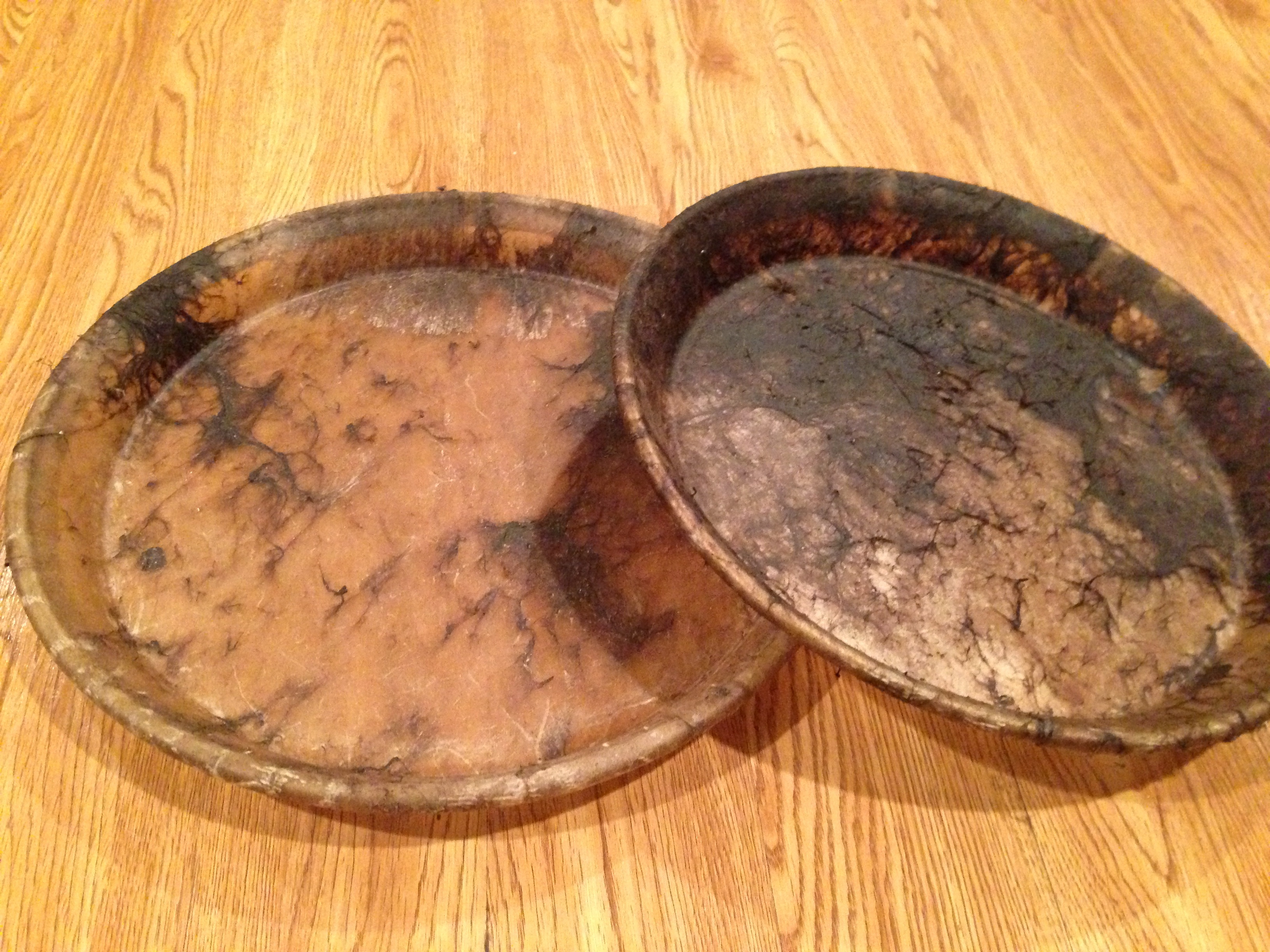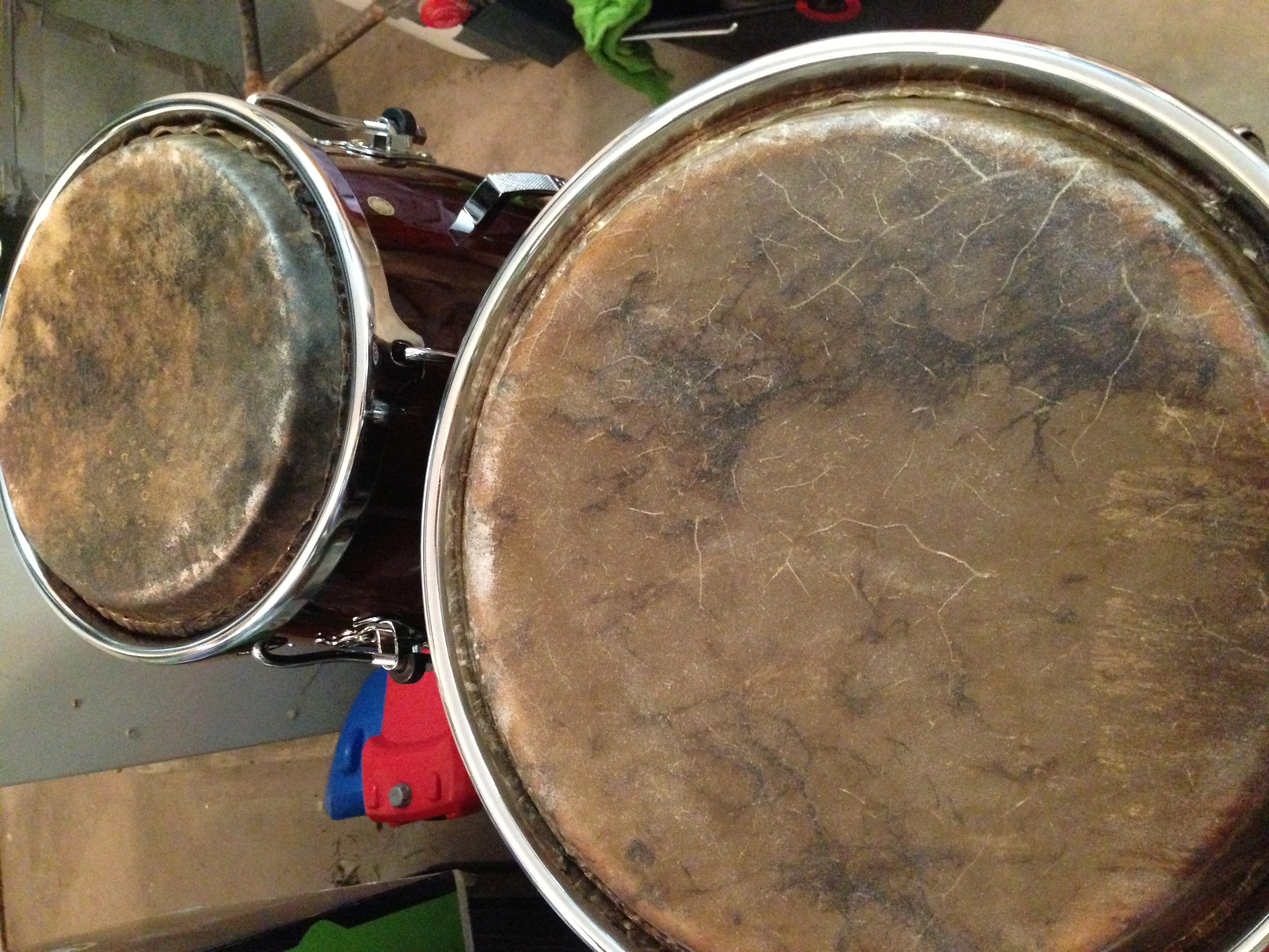 These are Manito premounted Cow Skins for a LP/Matador quinto & tumba. They produce a super crisp slap, and a dry open tone. I will be moving on to bleached, so my lost is your gain; I am selling at half cost which is $90 (60 separately), shipping is included. I used them for two weeks, PM me!