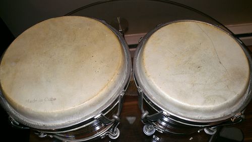 I am selling these bongos I won on auction. It was an impulse buy as they are more of a collectors item and I am looking for drums I can take and play at gigs, that are going to take the harsh reality of traveling around and they are also a little too small for me to really get down on. I never had rare cuban bongos before. One of the lugs seems pretty tight and I have not tried to tune them up, they are just not for me. I am not trying to make a profit and just want to get my investment back. http://www.ebay.com/itm/281090902146?ssPageName=STRK:MESELX:IT&_trksid=p3984.m1555.l2649
