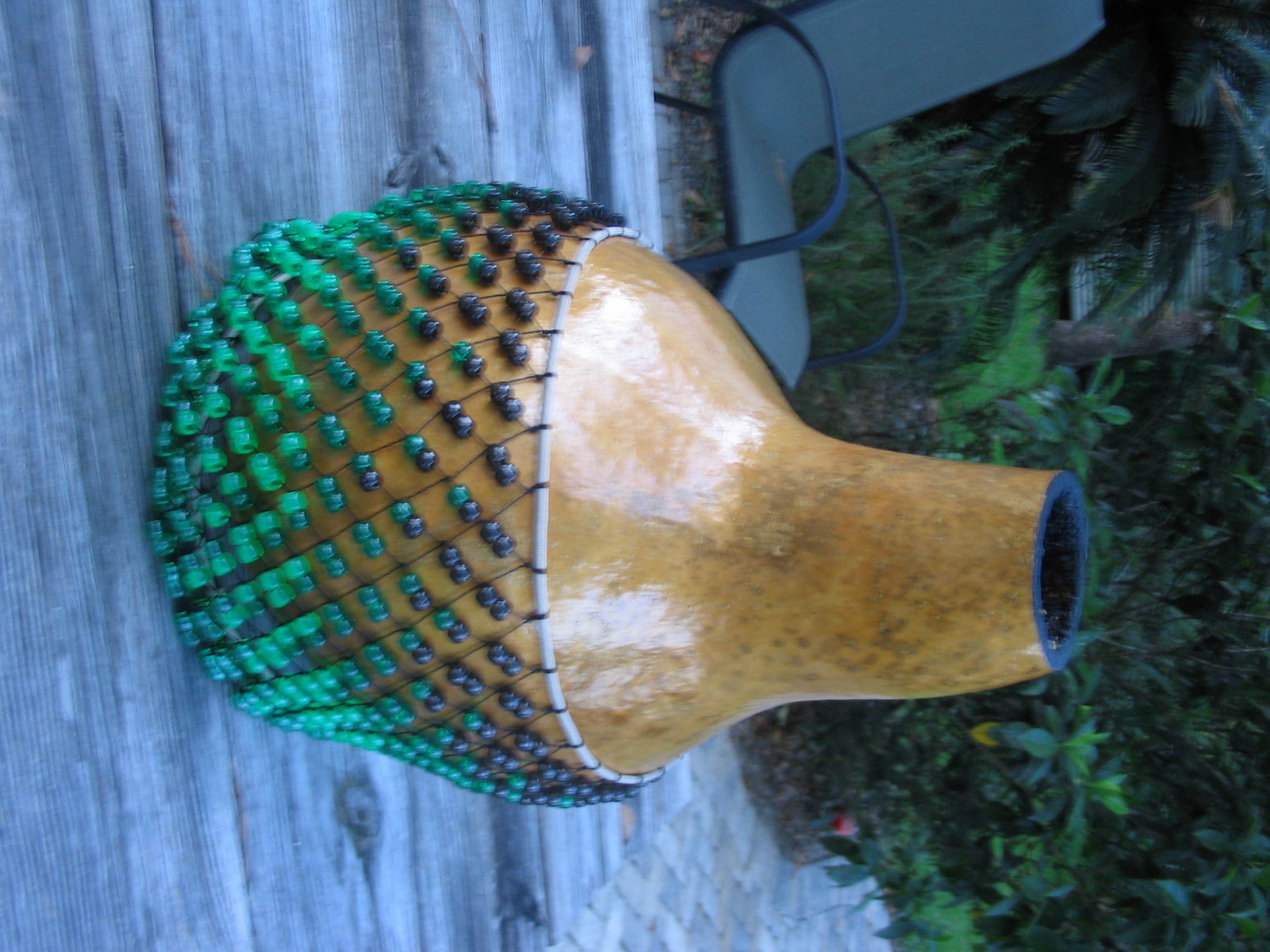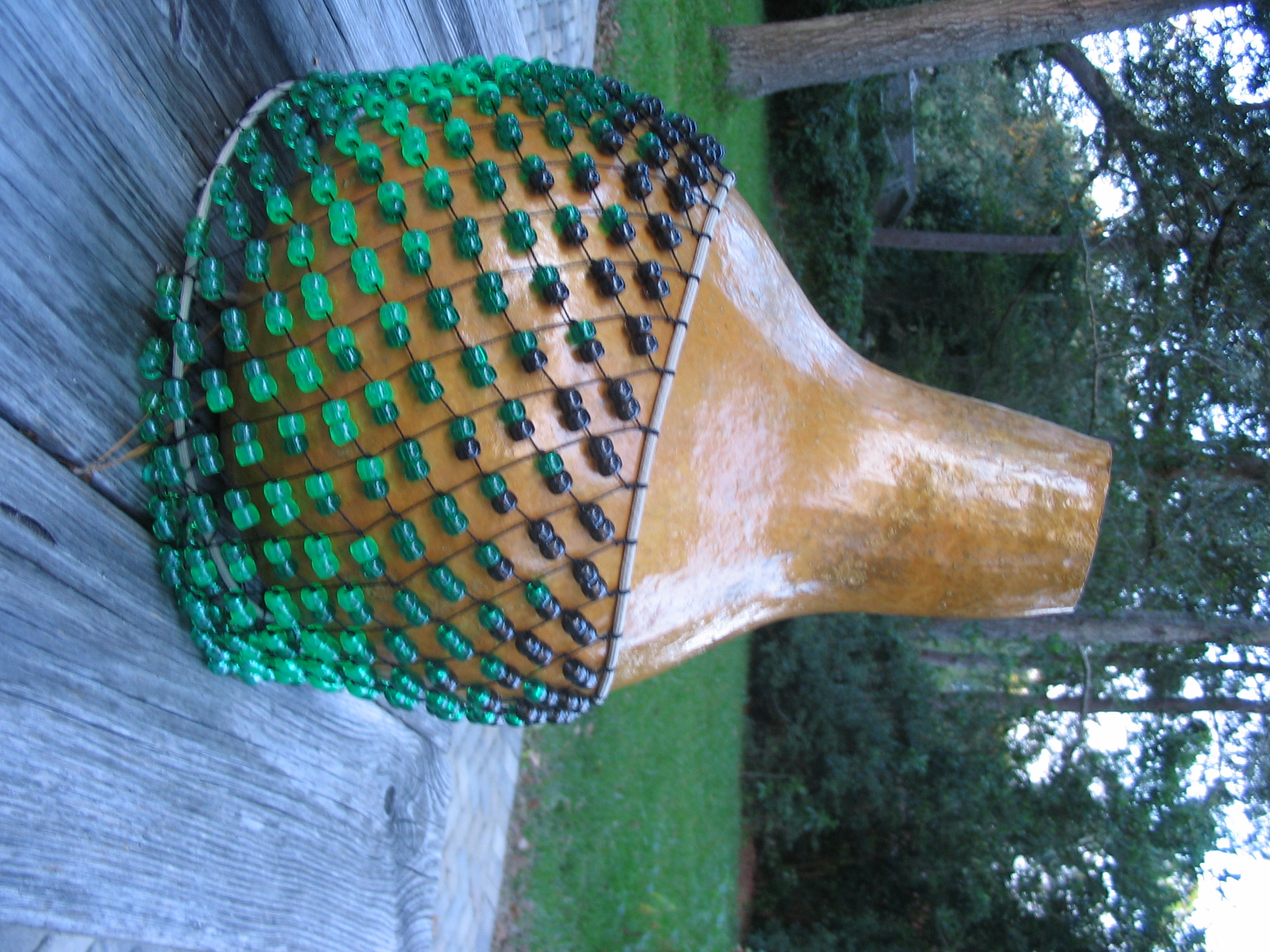 Been out of the shekere gig for a while. Actually planning a house move and career change so it's been hectic. I have 5 or 6 gourds that will *eventually* become shekeres but for the time being, I only have one complete and ready for sale before my big move. So here it is: