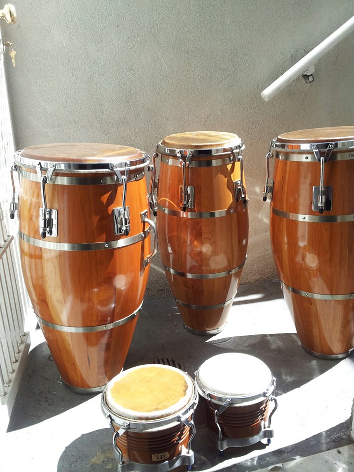 They cherrie wood the Tumba n Conga 2008 quinto I picked up my self 2012 one of the last one he made they all made in Afton NY