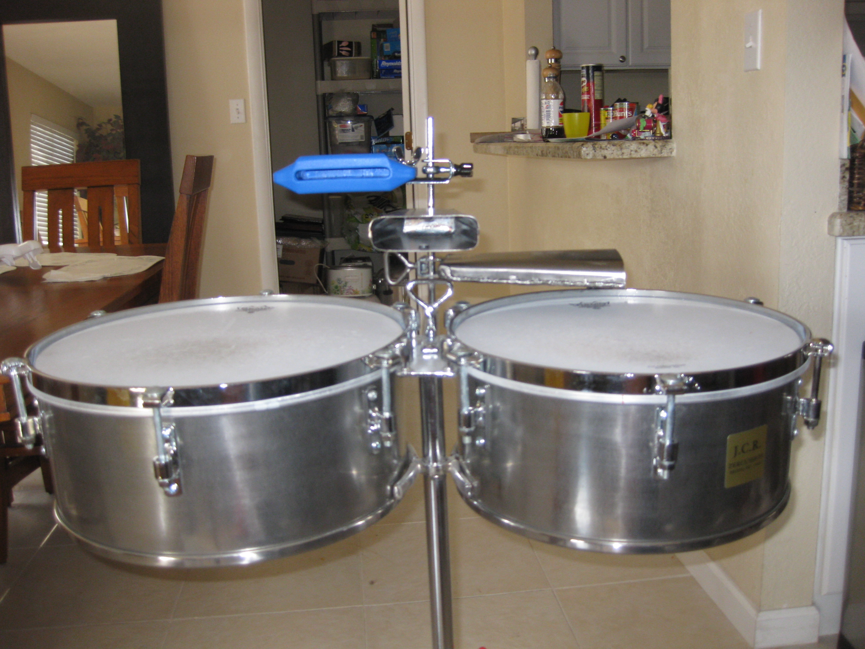 I have a set of JCR timbales for with all listed below for $450. Purchased straight from Cali Rivera in his shop in the Bronx NYC. Kids have new more expensive hobbies than daddy does so my gear must go. The set has barely been used, LIKE NEW!!