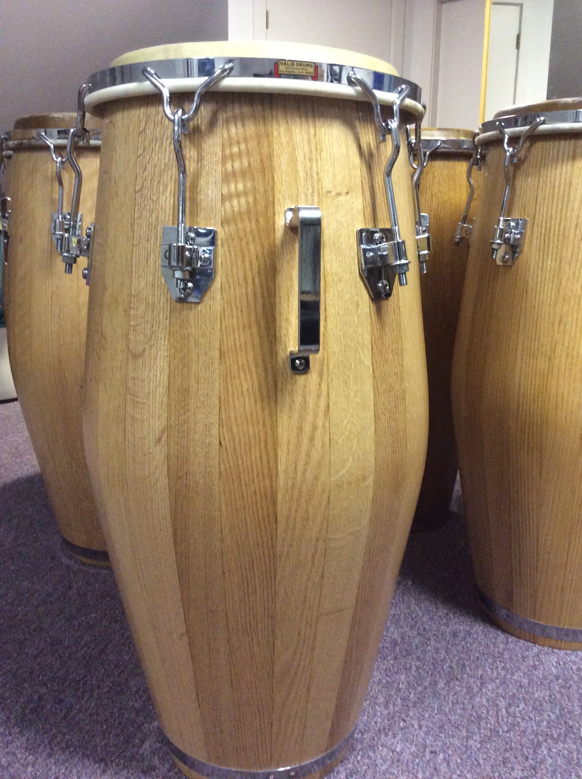 Refinished. The Super Tumba cracked while in storage and I repaired it. I took that opportunity to sand out any scratches and small dings in the drum. I had to refinish of course so I refinished all of them in a water-based clear lacquer. The appeal of the drums I have is mostly that they are a complete set with the Super Tumba and bongos. I think I have a buyer and we're ironing out the details of the sale now.