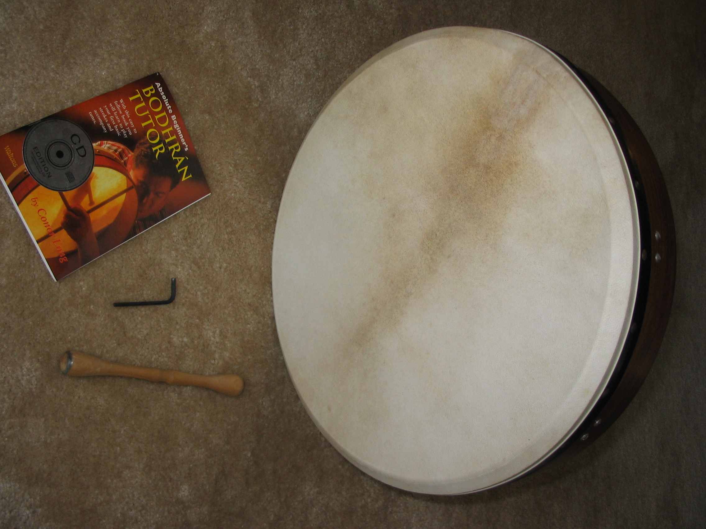 18" Bodhran $100: Rosewood frame, solid construction, crossbow support, and internal tuning for the goatskin head. Price includes tipper, 4mm alan wrench, and instruction manual with CD. Like new condition; head in great shape (no rips or holes).