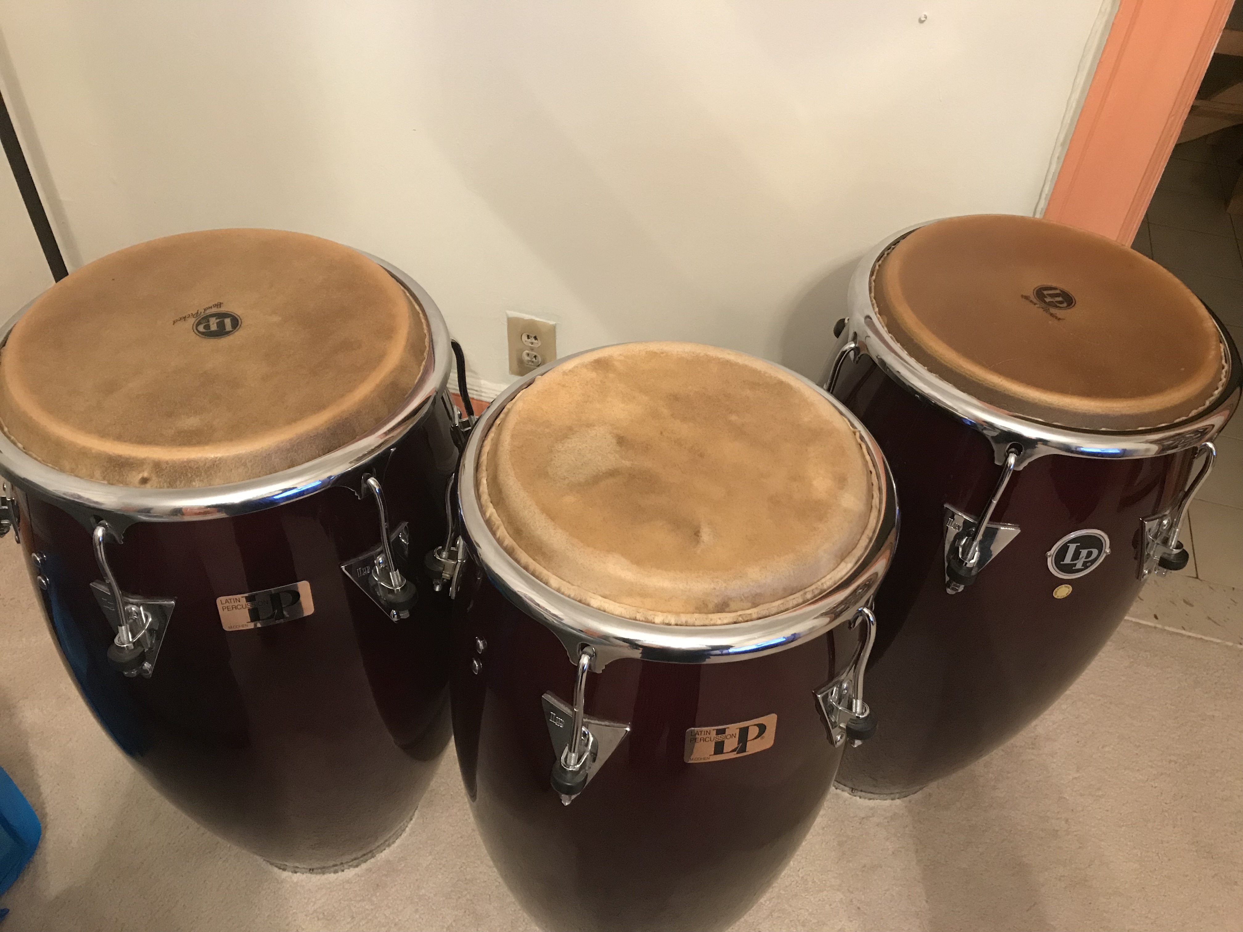 I have for sale on ebay a used set of LP Classic Congas in red wine color. The set consists of one Tumba, one Conga, and one Quinto. No shipping, ONLY pick-up. Please take a look at the ebay link below. Let me know if you have any questions. I can also provide more pics for those that are seriously interested. Also, my price is firm and non-negotiable. Thank you!