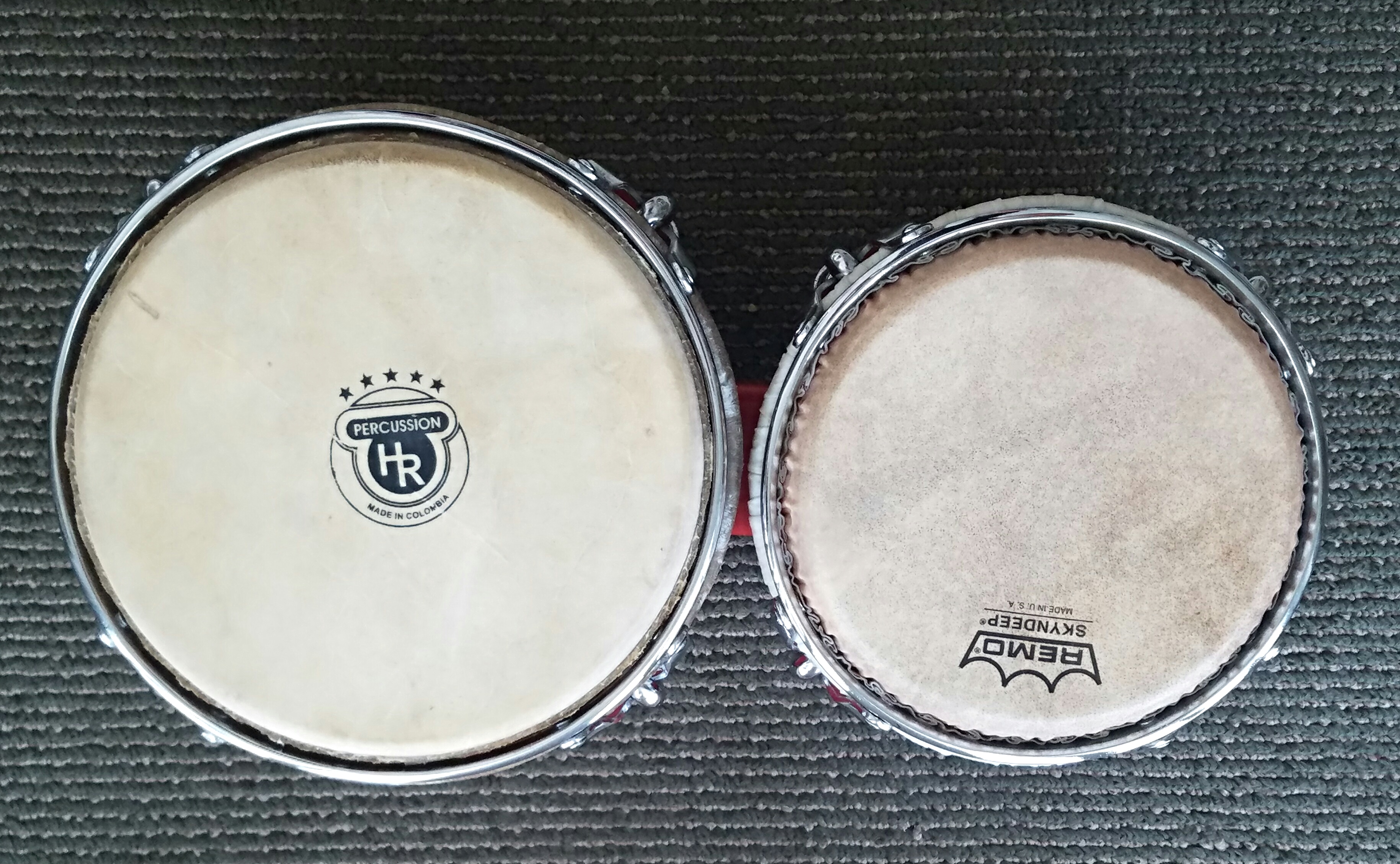 Hr El Piernas bongo for sale. Not made of guayacan, skindeep on macho and thick natural skin on the Hembra. Measurements 7.25 X 8 5/8. $325 plus shipping and insurance.