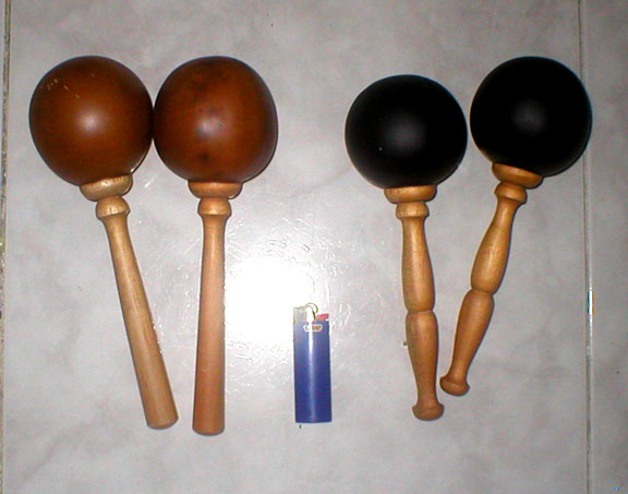 Tonio I picked up a couple of sets while in Colombia , these babys cut through and have that exact weight that you want to do the rolls, the drop of the beads or capachos ( the seeds inside ),makes them ideal for the Boleros. The maraca itself may be called capacho or capachas...they are very much part of the Joropo or Musica llanera from Colombia and Venezuela. The ones made out of raw hide are a bit duller, but they do have their place, and are predominantly used in salsa. I am posting pics of both sets and a set of pan con queso. They run around $30US .[attachment=0]maracas PQ.jpeg