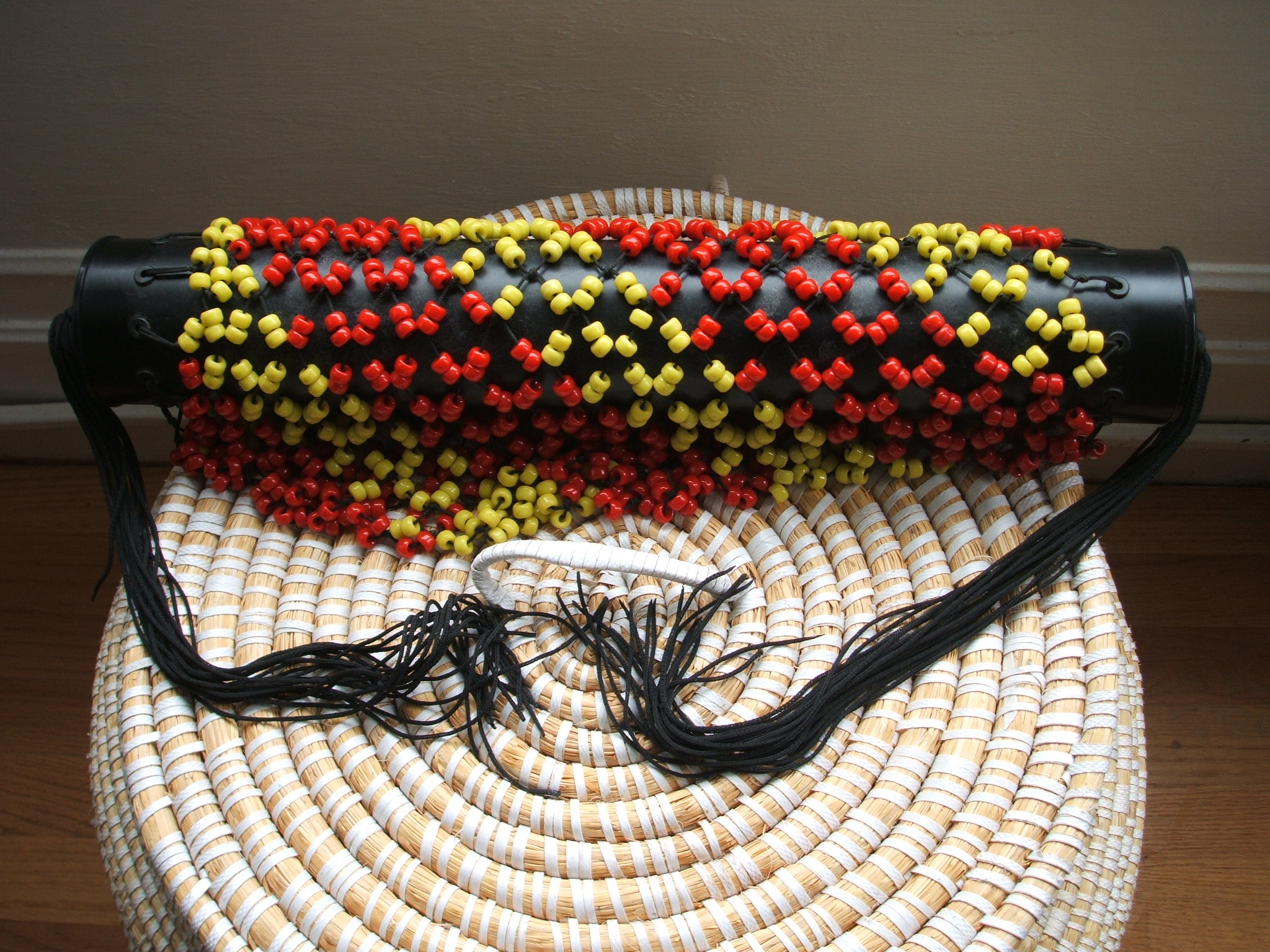 The shekere's history begins in Africa where this unique instrument serves as a shaker, a rattle, and a drum. Traditionally made from hollowed gourds wrapped in a lattice of stones, the instrument was, and is, played by shaking or twisting it to get shaker and rattle sounds or by hitting the bottom of the body with the palm of the hand to get drum like bass notes.