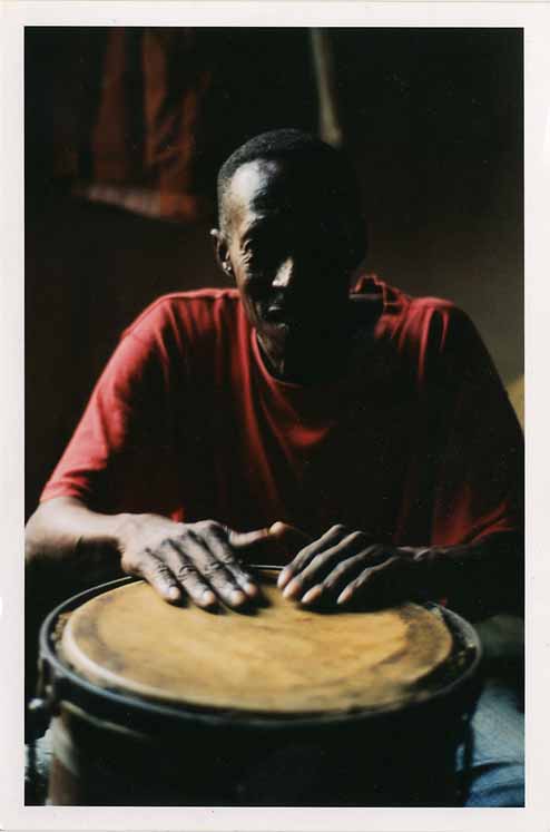 He demonstrated to me his technique of a different kind of rumba slap where he still exerted pressure with his left hand on the drum head... but he formed his left hand into a hollow so that it became in effect like a sound chamber which greatly amplified the volume of the slap. Played by him it was almost deafening (and kind of mind blowing). He also showed to me the difference in volume between the two techniques and how you could use both slap techniques in the course of playing. This kind of slap was usually used in a rumba context.