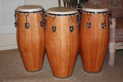 I just finished refurbishing a totally neglected, TOCA Quinto that I found in a Garage sale. I replaced the thin metal ornamental bands with 1/16 inch Stainless steal one's and took it down to it's natural Asian Oak wood finish. It has an outrageous tone on it, a nice little Conga. It has an 1o" inside diameter and appears to be a early Elite series, around 1999-2000.