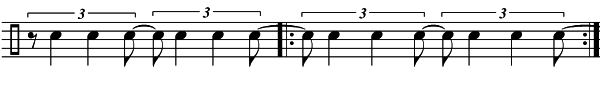 P.S.: Note that this rhythm is different from the displaced quarter note triplet as typically used by Elvin Jones in his comping style: