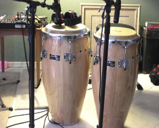 Did want to share ... my home practice set-up ... an inexpensive pair of Siam Oak (rubber wood) entry level Gon Bop Tumbao series quinto and conga. I realize these were strongly rasberried here on the forum ...cheap, mass produced, "Aspire" level drums... I have found them to hold good fit and finish, excellent (level) bearing edges , and reasonably strong hardware.