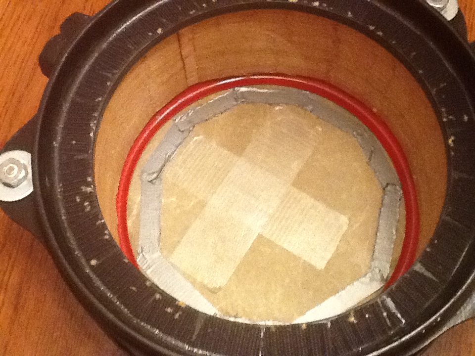 I lined the bottom of the drum with rubber. I found that the Reys and Travel Congas have better tone while on a towel. I attached round rubber padding to allow for this tonal improvement on a permanent basis.