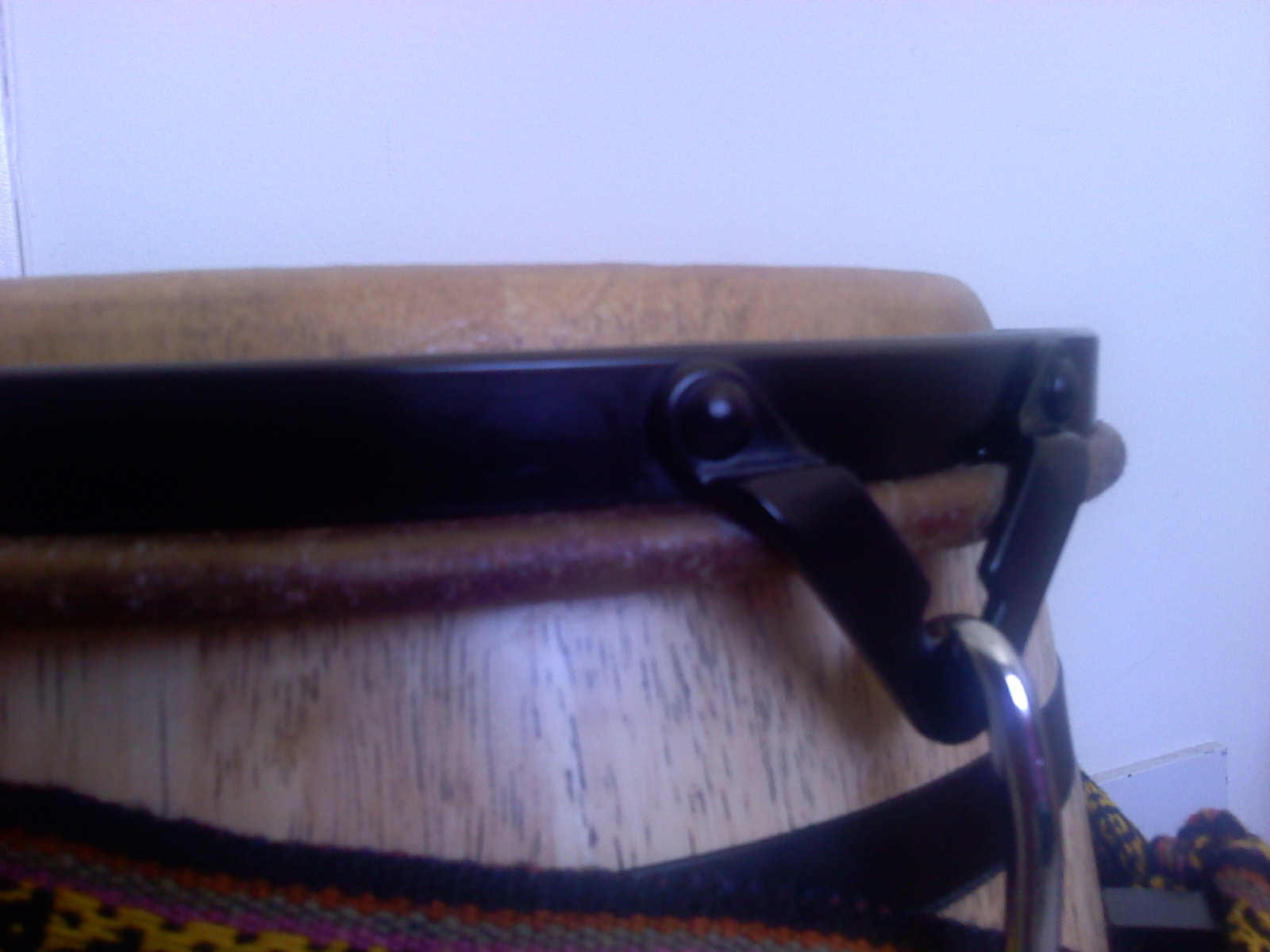 I replaced the "Hand Picked" heads, and mounted my own. I got my flats from L&H and 1/4" stainless steel flesh hoops from DrumSkullz. This is a quinto at 10" in diameter. I ordered new flesh hoops in fear that the thin LP hoops would give out too soon. Skin soaked in tub for 8 hours. When I mounted the skin, it initially was swollen past the lug hangers. Indentations after drying are still there, but will not have any affect, at all.