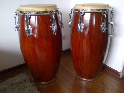 The painter suggested that he BURN the conga to match the color of the tumba, because the two drums were of different tones.