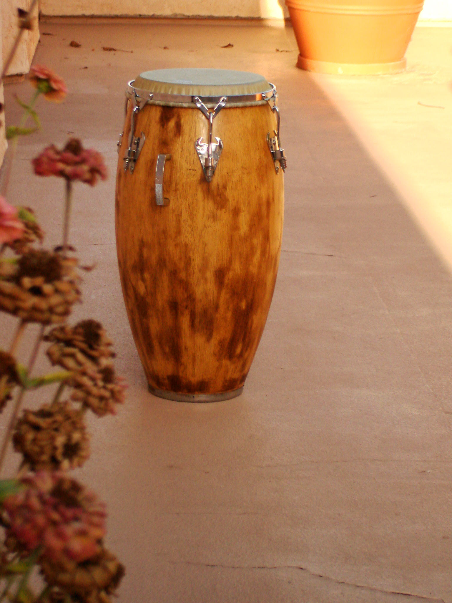 My first conga was an old Matador Quinto. Got it used for 100$ at a small music shop back in 1992. It was in great shape. I beat that thing! Now its being refinished. Still in the sanding stage. Here's a shot of me 2 years ago playing it at a picnic in the park.