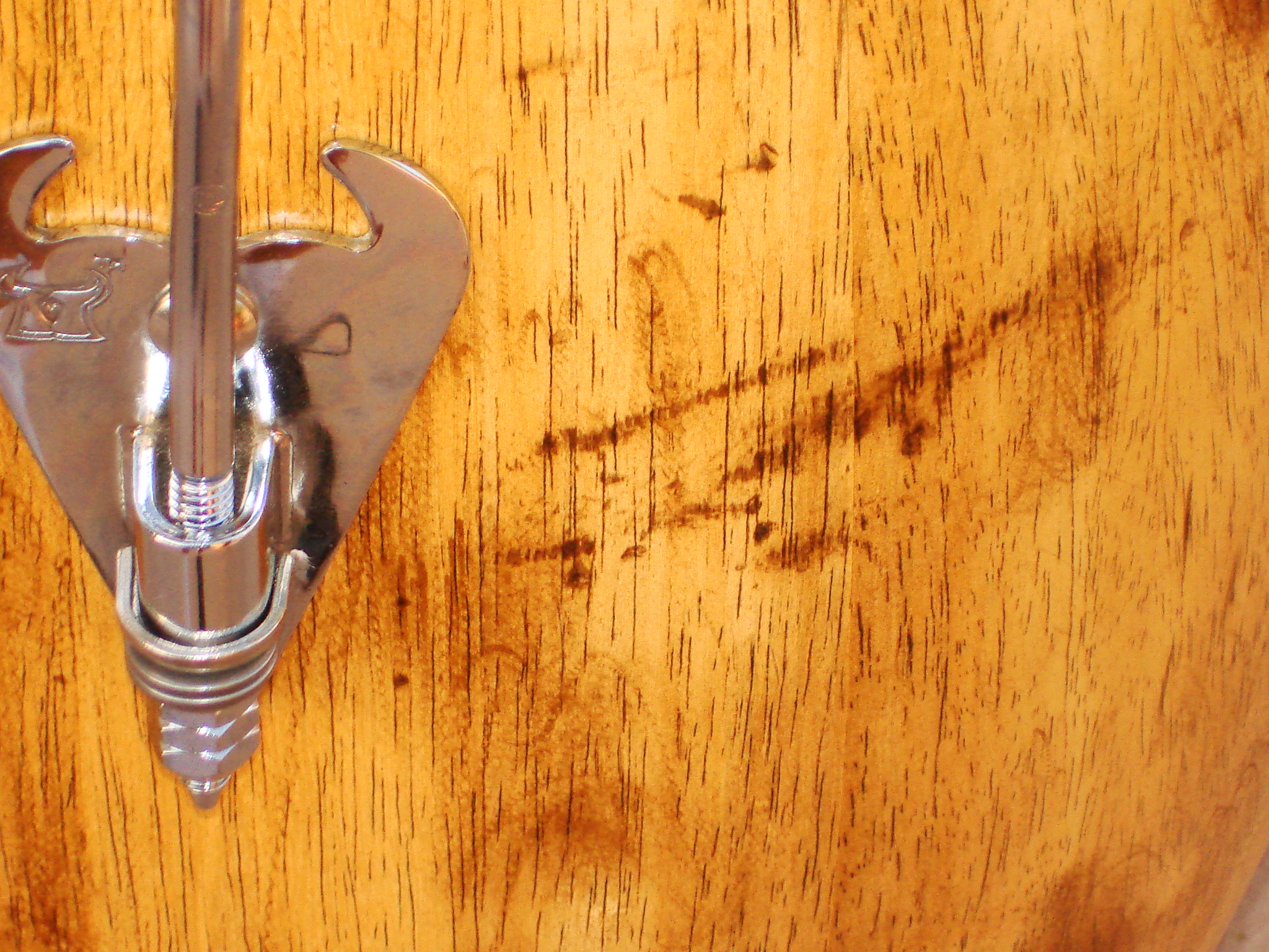 AWESOME PHOTO OF YOU, WITH YOUR OLD SCHOOL LOOKING MATADOR QUINTO! ALSO, THANK YOU FOR THE PROPS. AS YOU CAN SEE IN THE PHOTO, THIS CONGA WAS ORIGINALLY FINISHED IN NATURAL LIGHT WOOD, WITH A COMFORT CURVE CROWN. IT'S THE CONGA ON FAR LEFT. I HAVE STRIPPED IT DOWN, SANDED IT FROM ROUGH TO SMOOTH AND HIT IT WITH STEEL WOOL. I DID NOT REMOVE ANY SURFACE MARKS, AND HAVE EVEN EHANCED THIER APPEARANCE BY ADDING EXTRA STAIN IT THOSE AREAS.