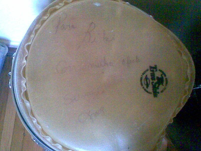 The Conga skin that was signed by Mongo Santamaria to me saying" Para Riki, con mucho afecto, tu amigo..signed mongo