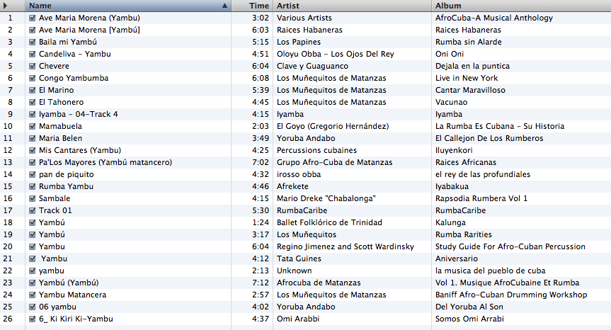 On the other hand, I can't recall hearing the "long clave" in a yambú of any havana-based group, though it come up quite a bit in early rumba recordings (at faster tempos in both guaguancós and columbias) and you can hear it in columbias in more modern recordings (I think the ones on "Rapsodia Rumbera."