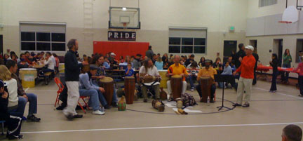 I’ve never seen so many people stand and watch with their jaws agape in awe! Many people from each crowd that came to watch us approached the stage and made it a point to thank us. A few would come back for every performance as they were “hooked” on our sound. A cute local gal Jennelle, hired to photo-shoot the festival, really liked us and got numerous photos of us. (yes, we're supposed to get some from her) Later, it turned out that she had a huge crush on Ritz. Yeah!! The irresistible Italian Stallion - who could blame her? So, she hung out with us most of the day. We let her play shaker on a song and sing a rap at one point. She had a grand time, as we did with her and her friends. At one point we were told by a crowd member that a guy sitting out there was a percussionist. So, we let him play bell on an Iyesa, and he did great. He definitely swelled with pride when he went back out with his family!