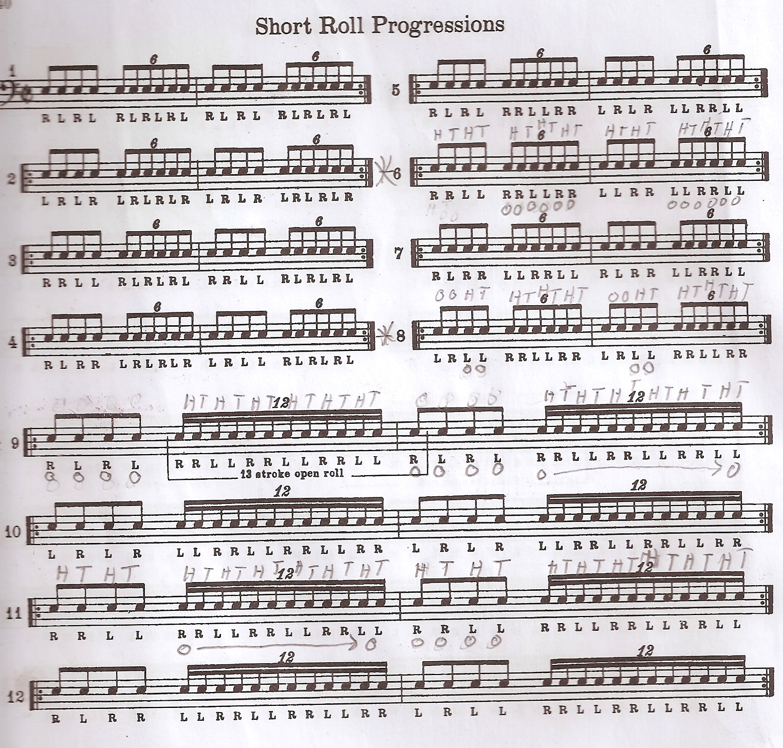 Please note that the subject at hand is concerned with the “Roll Progression” exercises in Stick Control.