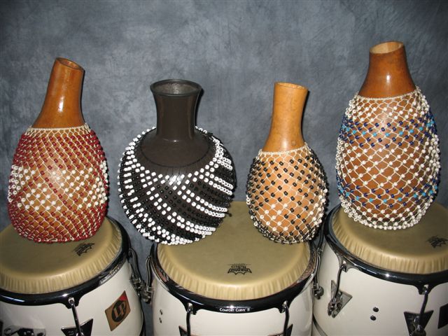 I've had these gourd shekeres for many years...picked up the fiberglass one last year. I tend to use the blue/white one the most.