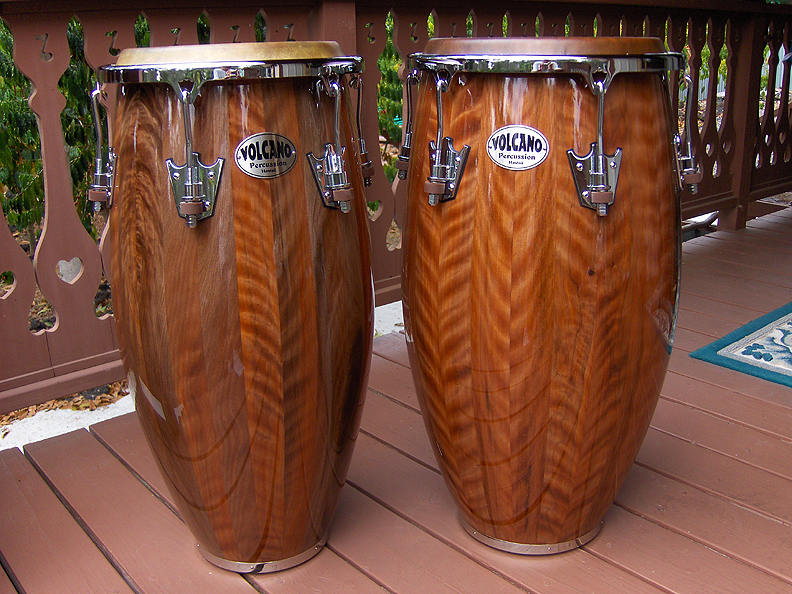 I have not personally played these drums but I am told they sound fantastic. They are the same shells as the top of the line Volcano drums. The wood is less expensive and it is outfitted with the wonderful heavy duty Remo hardware. This set I am told is very rare because the wood was from a very old tree. The wood had some beautiful lines in it. Most of the Ohia wood is very beautiful but this Ohia wood was exceptionally wonderful. I think they were only around $599.00 each and free shipping. All I can say is this has to be one of the best deals on the planet at this cost and this craftsmanship.