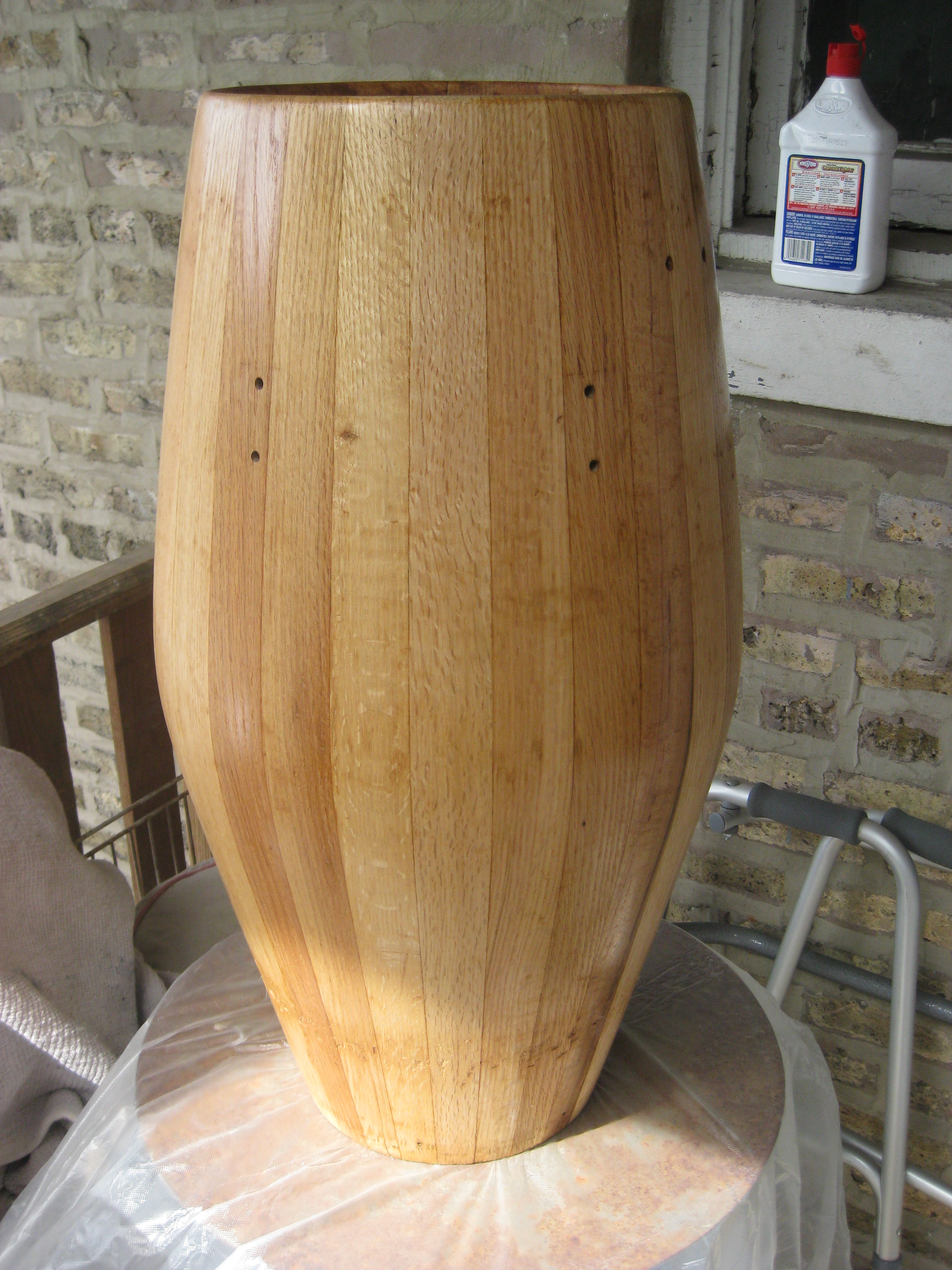 Ok here are 2 congas that have been sanded and 1st coat of poly. Tumba and Quinto. The conga is waiting for when I have more time. It has a an old glue joint that i want to fix and i have about a 6 in section that is glued that i need to remove. I have no idea how to do it.