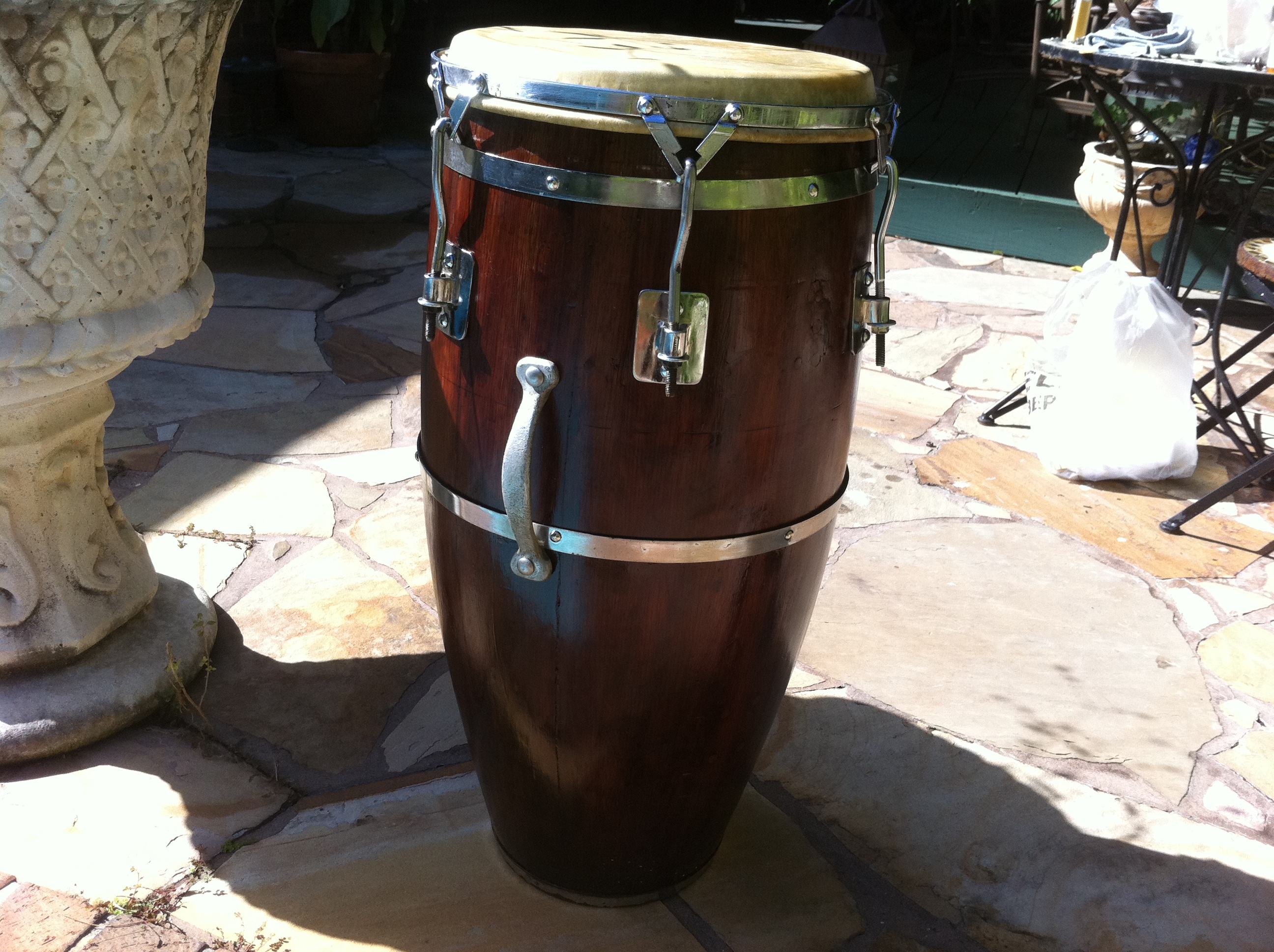 SONOC tumba 4 sale 12.5", made in Cuba in the late 70's, Majagua wood. I put an LP crown for convenience, have original SONOC crown. At one point in time conga had legs attached to shell, wood dowels are in place. Nice size SONOC tumbadora, very melodic. Zoom photo for clear view New Year's special $349. Moforibale!