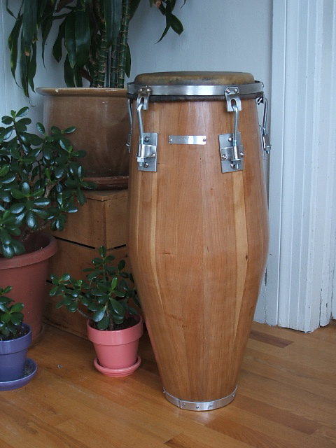 Conga drums are traditionally made by assembling all the staves together at once during steam bending. Simultaneously, steel bands are pounded down around the staves to force them into position to form a drum. Consequently, when dry, the staves will always be under stress, wanting to spring back to a percentage of their original position. Coupled with constant changes in temperature and humidity, the joints can be weakened. This is the primary reason some drums delaminate after time.