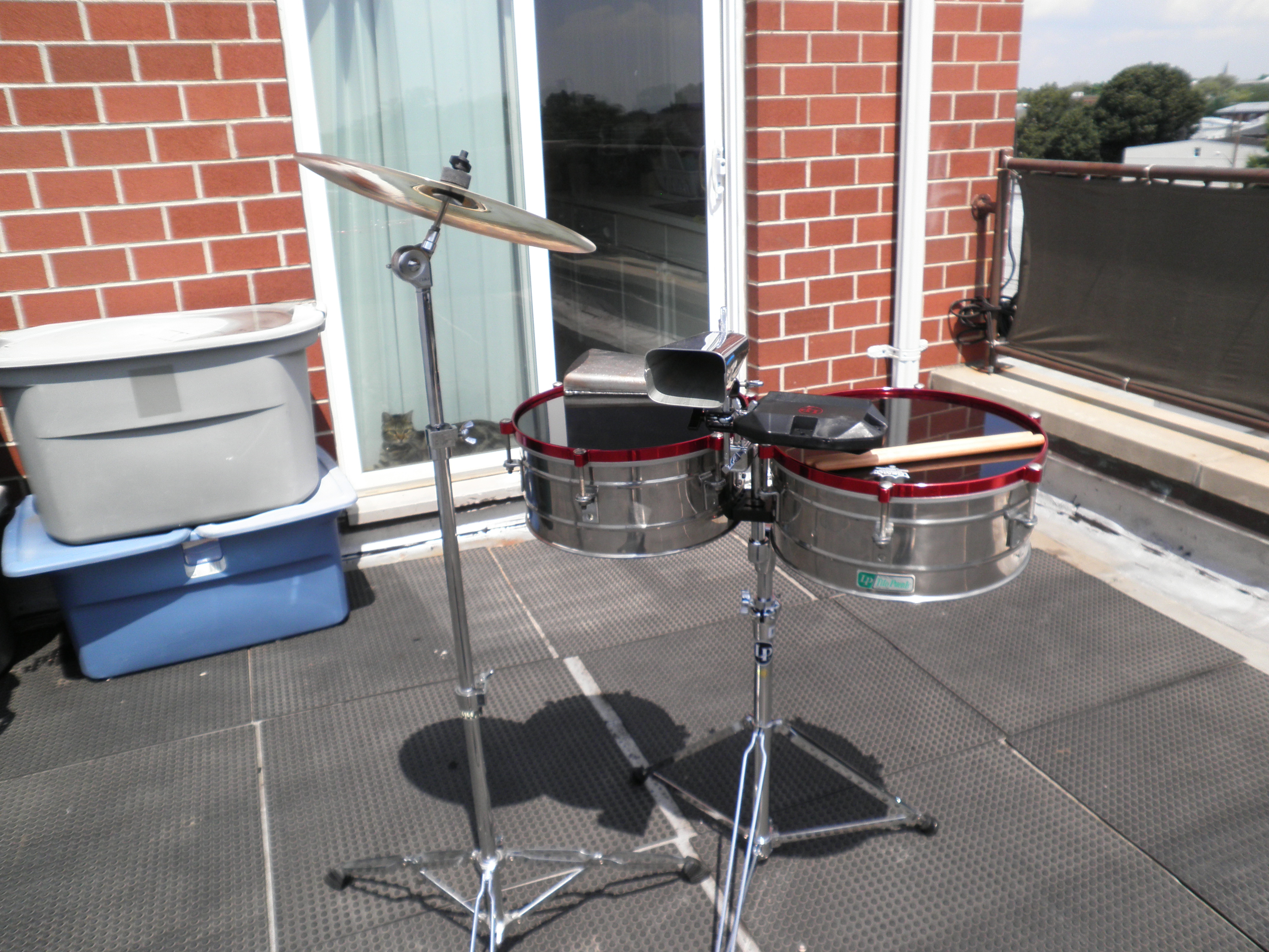 Update: An improvement on the Green badge Puente set. My stand was a bit run down so I opted to buy a new stand. Personally I'm not too enthralled with the tilt system but the overall sturdiness of the stand eliminated the wobble between the shells I had with the old stand. The wood separator block was a bit frazzled as well in essence it was a good switch for me. I picked up a black stealth jam block and it accents the overall aesthetics of the set beautifully. The 16" Zildjen ride/crash cymbal is OK for now but I would like to obtain the 18" "El Sabor" Sabian ride/crash cymbal. I heard it's acoustics when I visited the Guitar Center in Brooklyn's Flatbush mall and fell in love with it. Maybe a Christmas gift to myself in December.