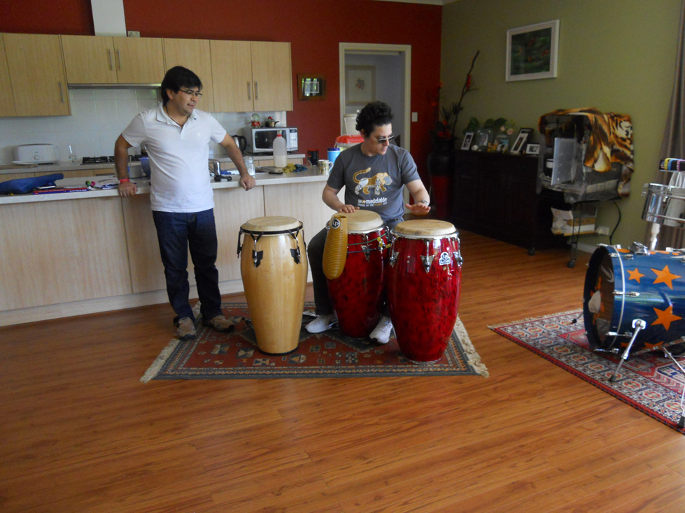 Over the weekend we were lucky enough to have a lesson with the All Star's percussionist Pepe Espinosa at my mate's place. The friend owns just a basic pair of LP 'Accents' model congas with cow skins. I've played this particular set of congas many times and they are ok but nothing special.