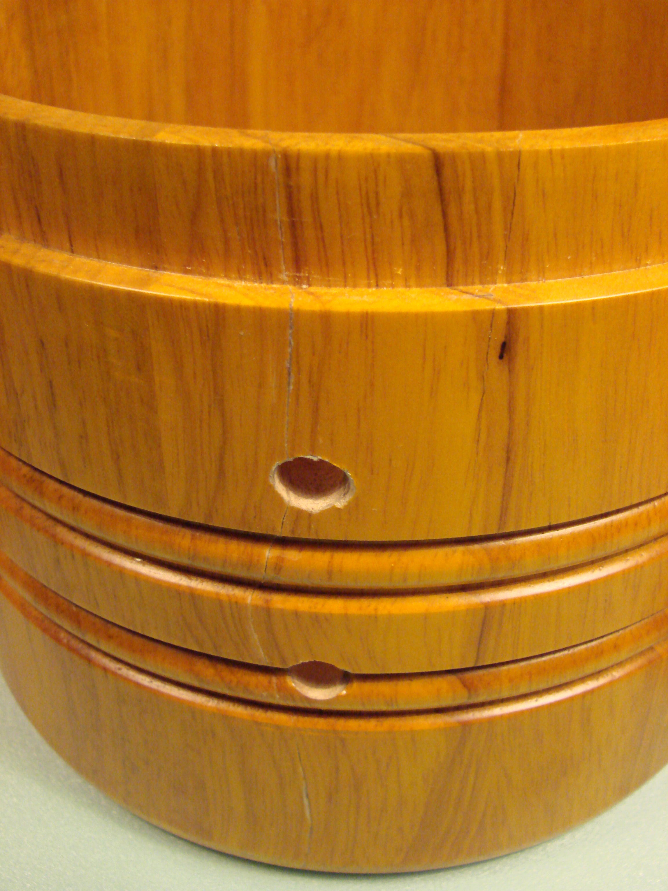 The seller on e-bay replied to my question regarding the condition, that there were'n and damadges as far as he knew. I received them and the hembra had two cracks one about 2,5 In. and the other almost all the way from top to bottom at the stave holes. :( Other than that they are in very good condition; They don't appear to have been played very often at all.