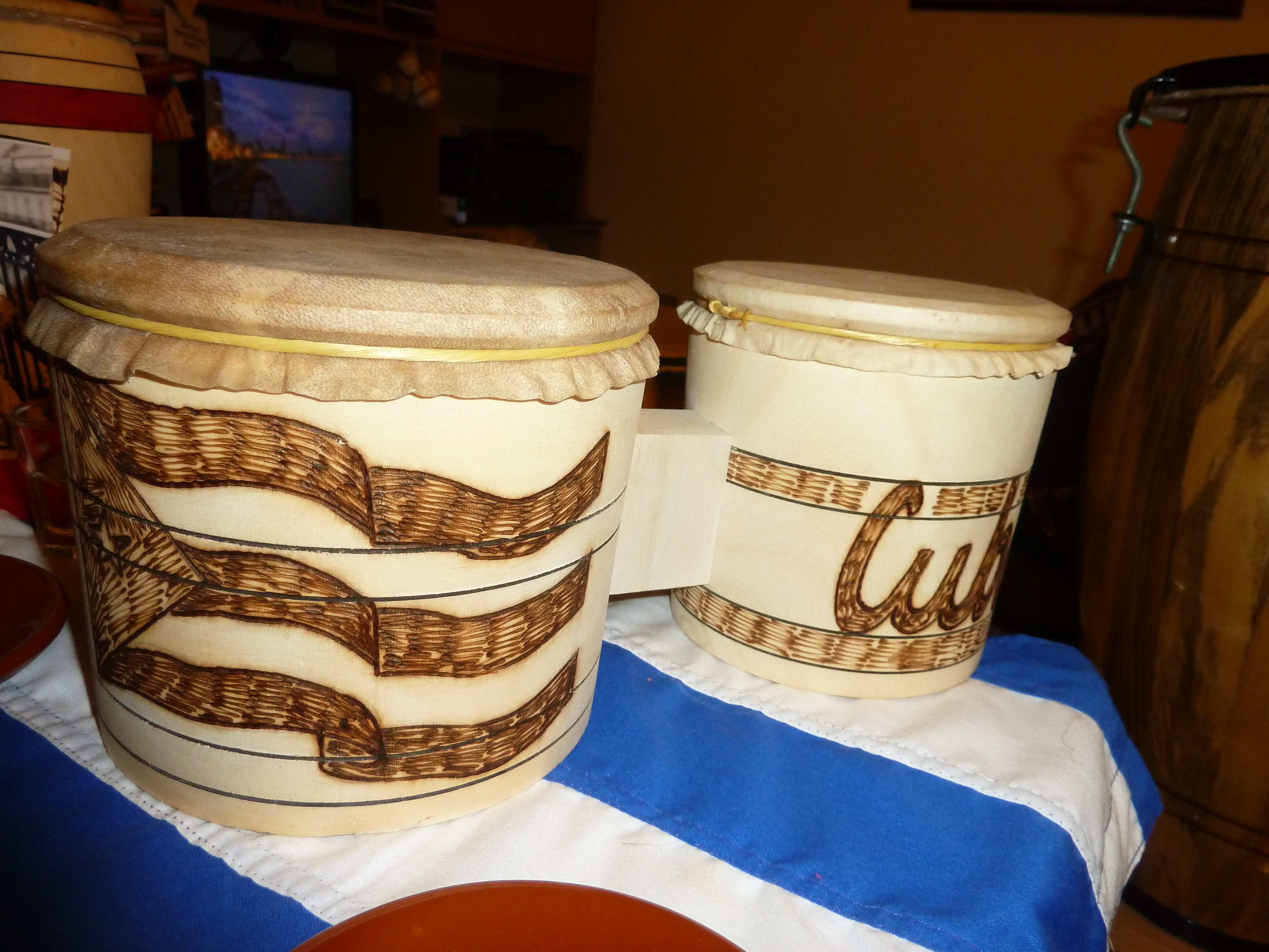 docarroyo wrote:Burke I agree with you I love the art on the drum many here would not appreciate the drum. I look at the shape and think to myself with the proper hardware and skin I bet it would be a fantastic player. Ive puchased some great drums off of ebay because they didn't look correct, well Im glad they didn't cause I was able to get them for alot less. I LIKE IT Very much, good luck with it it has mucho potential. Here is a funky drum before and after photos I also purchased it off of ebay. It was made out of hollowed out solid piece of tree, in 1963 in Branquilla Colombia, The lug plates are SOS, the crown is Gon Bops, head/skin is horse, lugs JCR/Cali.