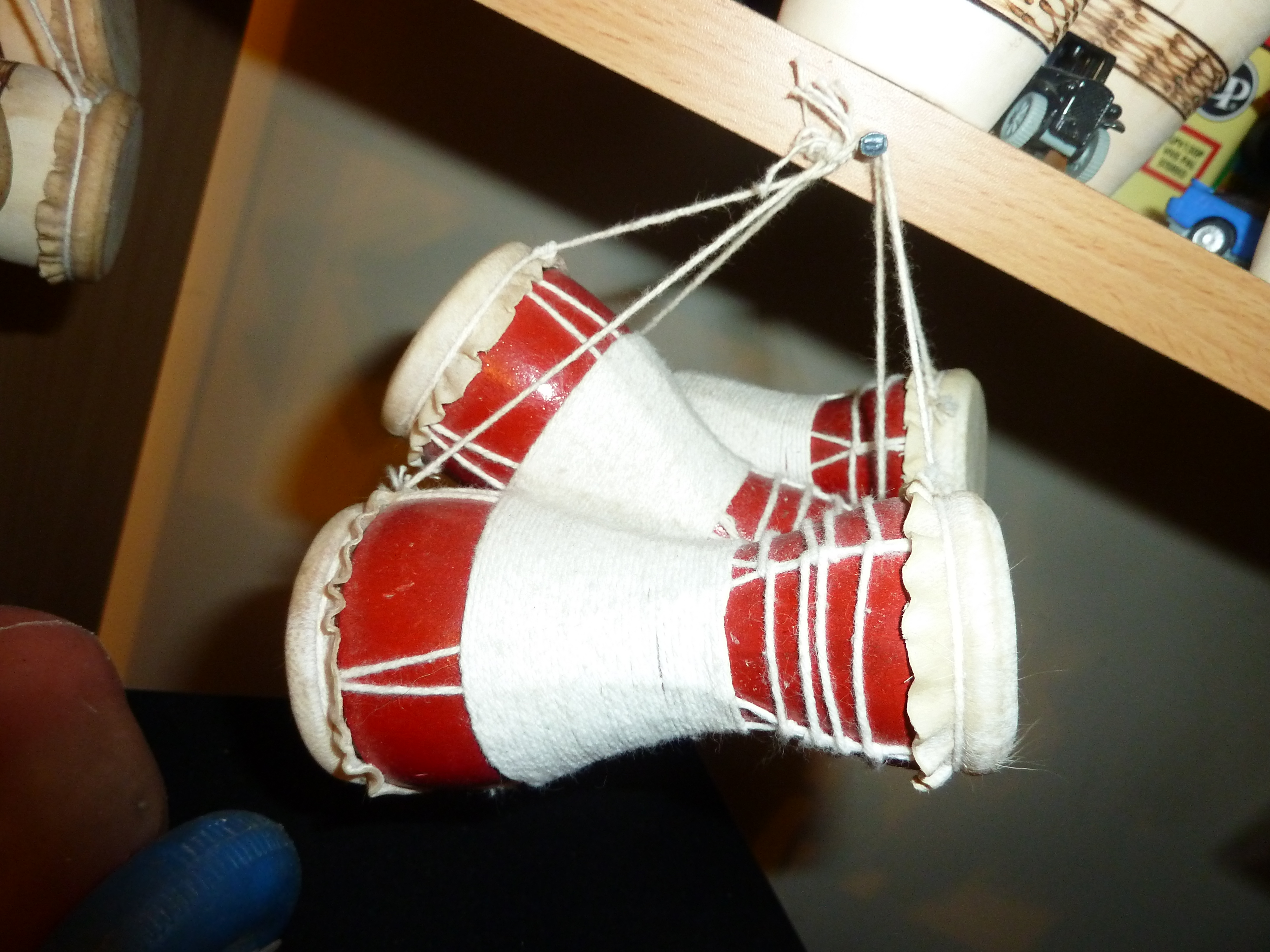 Pandeiros with Hair on them. the lighter collored one i shaved later (sounded great, but the hair was falling out with the constant playing) and i decided to burn the wood. the die are what i used to make the jingles. both made by me. dark is the first, and light is the latest