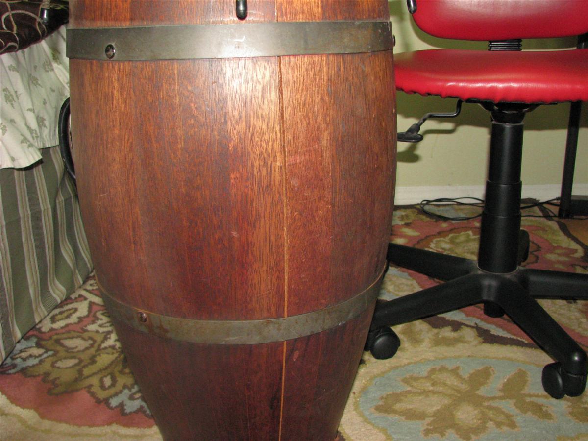 The drum has seen better days. I noticed the large crack - full length of the drum - between staves and the second crack (split) in a stave....after I paid for it. I was so excited about finding a Gon Bops in the store I did not even look at the drum carefully before paying for it. I recongnized the badge and that's about all. I'm not complaining - it is a very nice drum and the damage is basically only wood and wood can be fixed.....maybe not by me however.