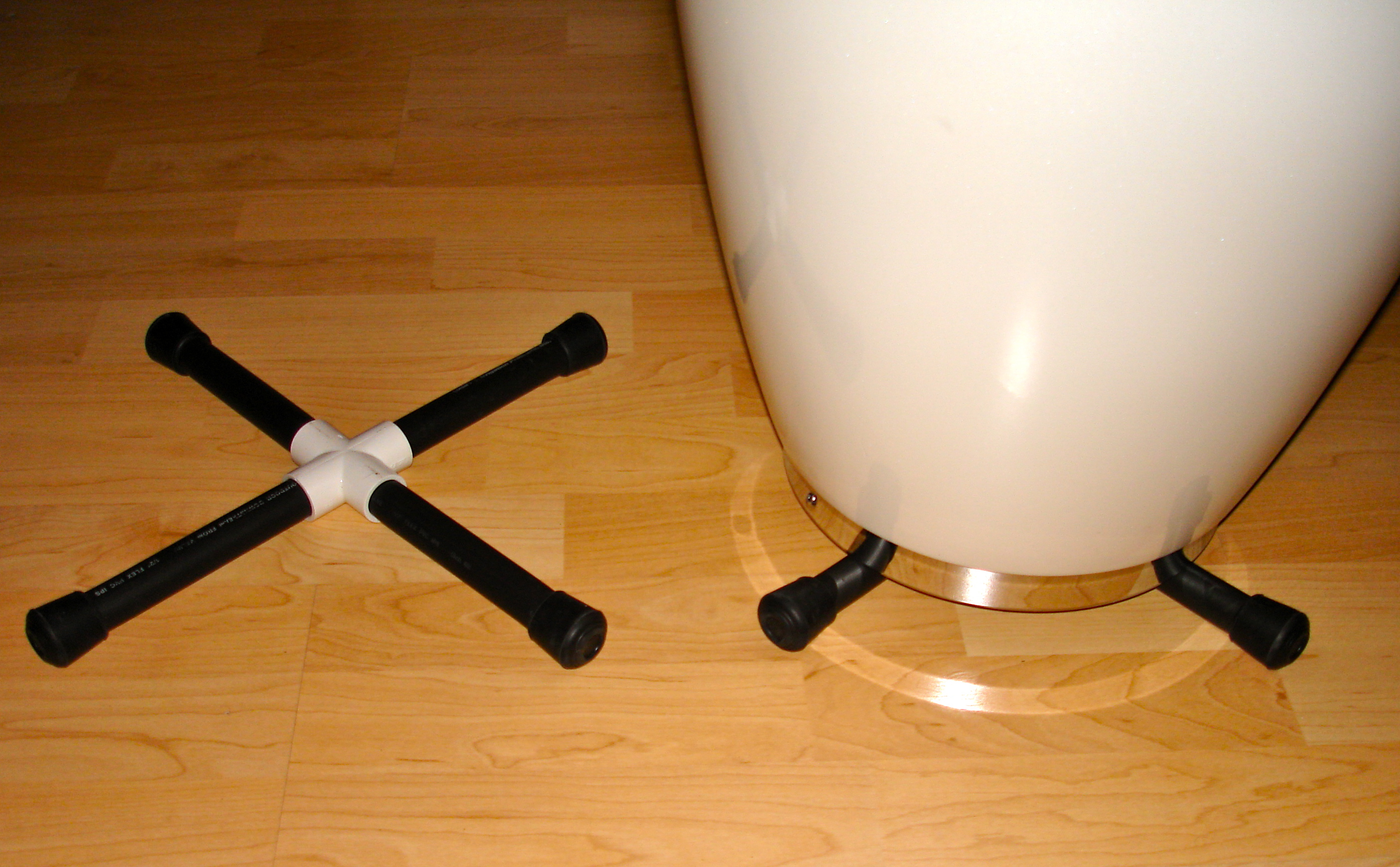 I wanted to share some information on a set of conga stands that I have been testing/using now for quite some time. I am 100% satisfied with them for a number of reasons. These great little stands hold your drum up off the floor just enough to let the bass come out. The stands will protect any floor you play on. They are super light weight. They fold up very small. I actually carry them in my percussion bag and they do not add any noticeable weight. The stands are only $13.50 each. $12.50 each for two or more. Purchase 4 or more and get a free bag. (While supplies last) USPS shipping would be extra. They can also be fitted with a light for a cool effect. As I said I have used and abused these stands and they really hold up. Super light weight and very affordable. I really like these stands and I believe you will also enjoy them. Simple design and very funcional.