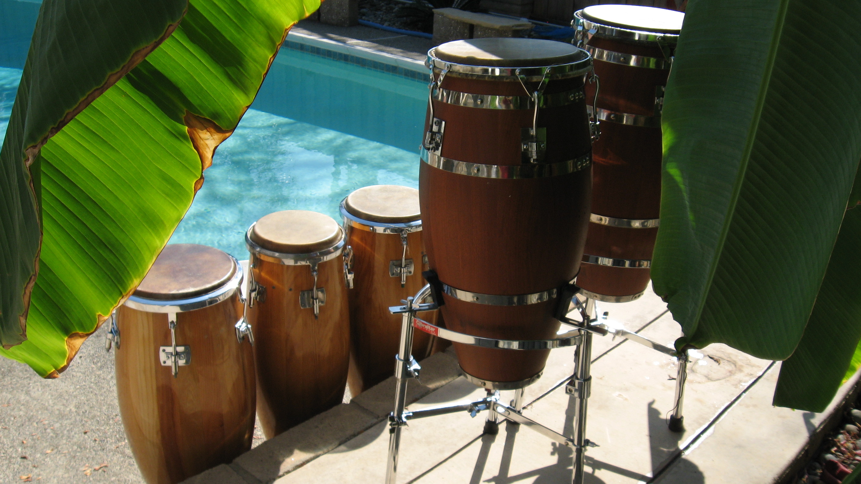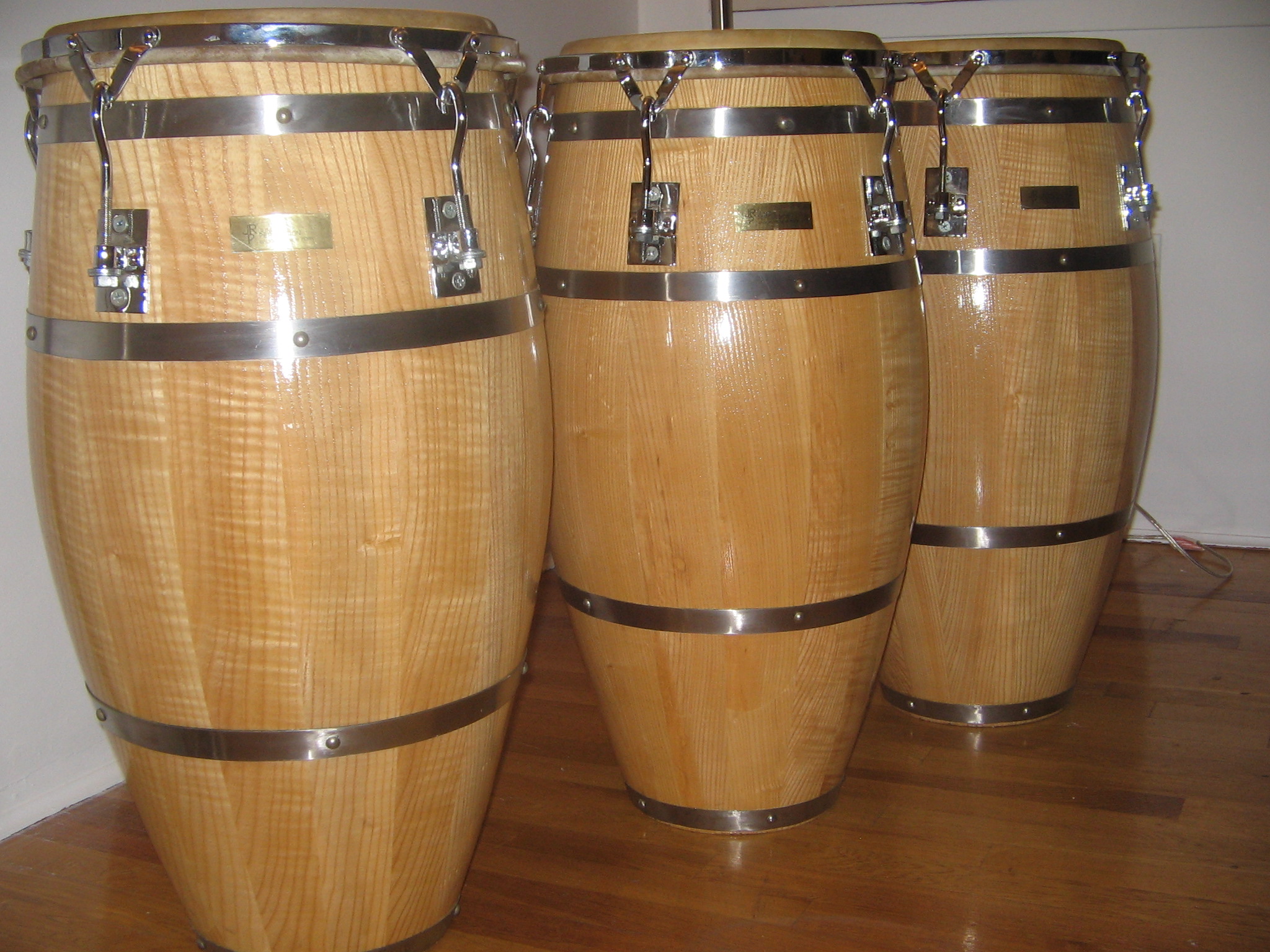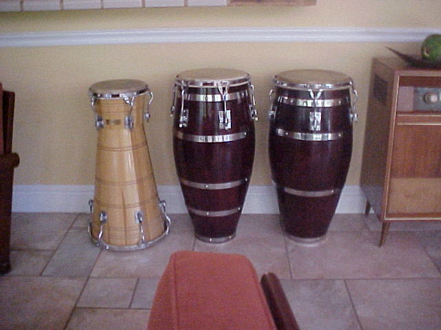 First my current set, macho 11 3/4, hembra 13" made in Dec. 1999 before the Y2K. Second, beat up Juniors I bought in a pawn shop in the Bronx, Junior had already passed, had Matt Smith refurbish them. SOLD them, but I could kill my self for doing it, circa 1968/69. Third Iya I bought a Junior's apartment, it was Julito Collazo's at one point in time. Fourth I nice pair I sold on Ebay plus the bongos that I still have.