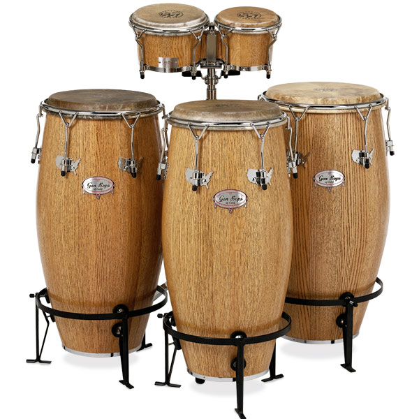 They come with both Gon Bops rawhide heads AND NuSkin heads (with the Gon Bops Logo on.)
