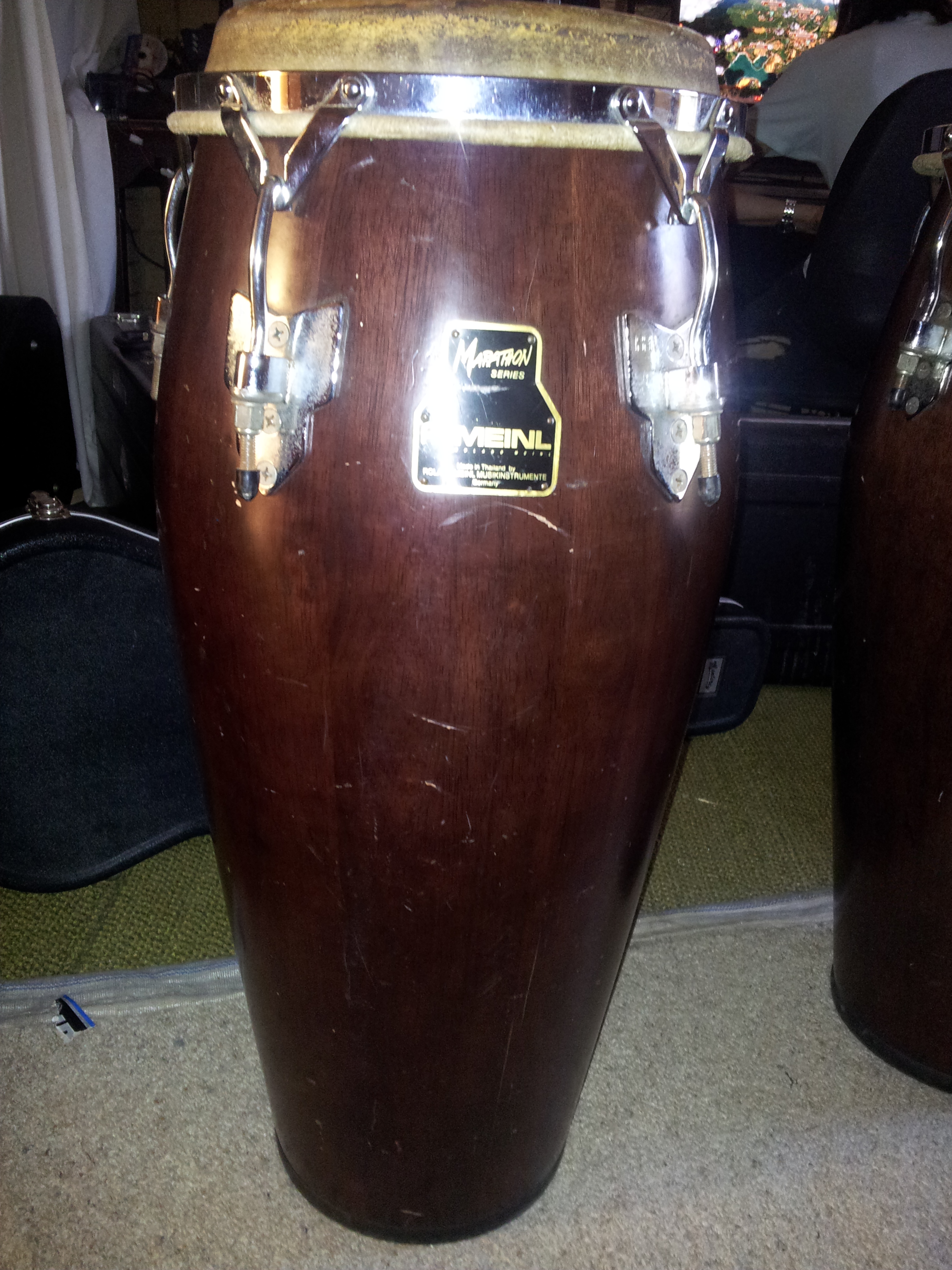 Hi Guys I'm new to the forum. I have been playing percusion for quite a few years. mainly in a church setting. I have a set of lp calente congas but I recently picked up for $150.00 Aus. 2 old well played meinl marathon congas they have traditional tentioning rims on them, yes they need som TLC and new heads but they sound allright. What I need to know is advice about the sizes and how old they are. the heads are 10" and 11" on a 30" shell. the newer marathon series all have bigger heads. I have not been able to find any info on these older ones so I would appreciate any suggestions.