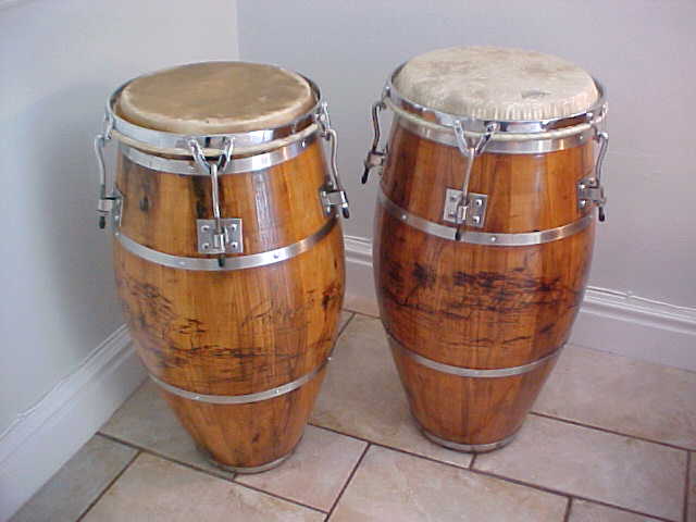 Photos of my recently refinished Timbas Ismael congas. Waiting for a nice mule skin for the hembra. Incredible big fat sound. Sonido encojonao!