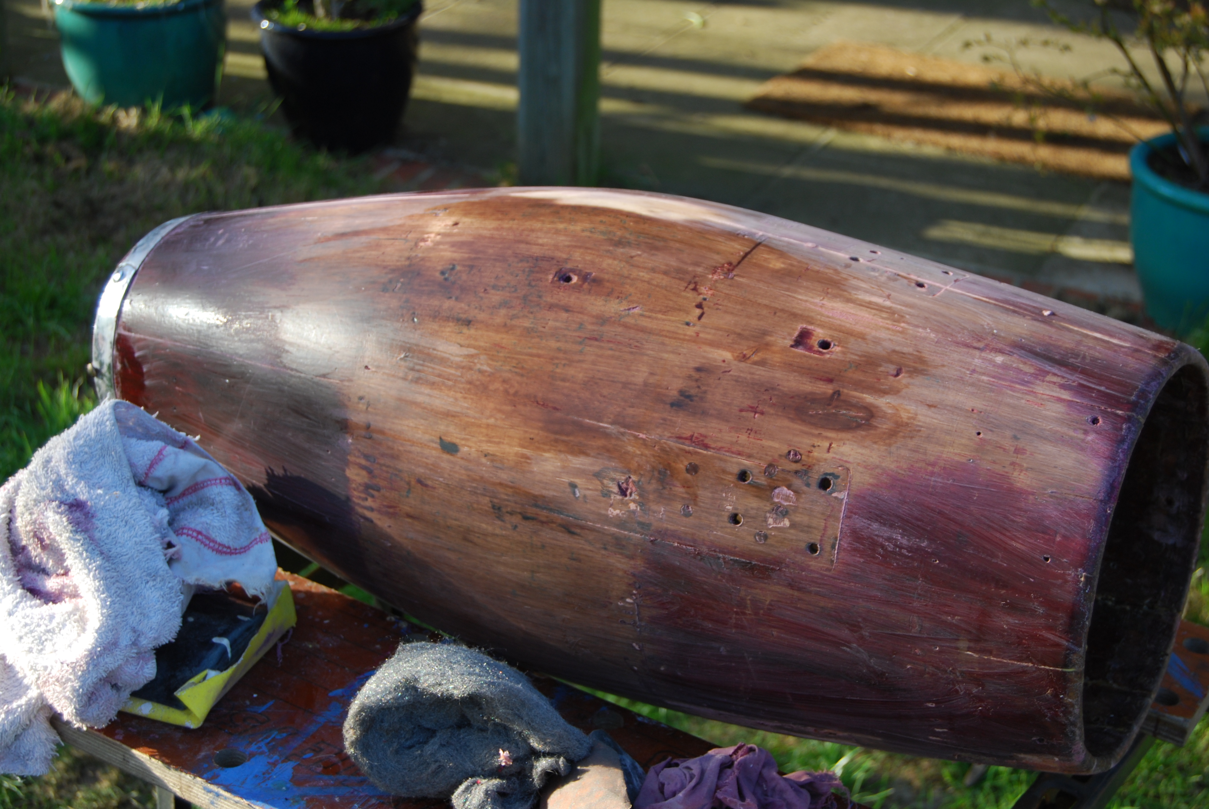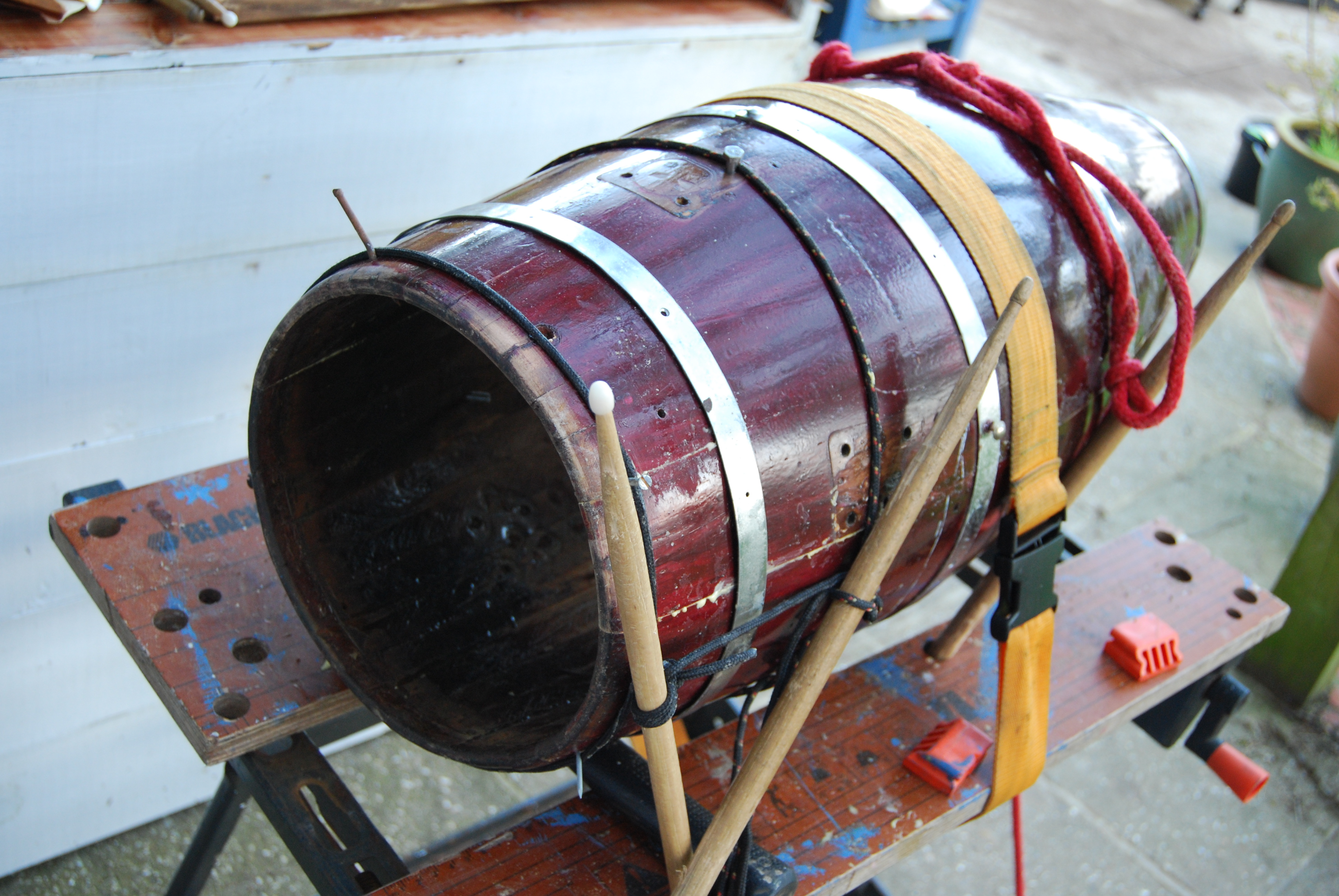 ok already you wanna talk dog not conga ,Is this conga a dog or is gonna turn out a real tiger, one never knows when you start a project......is the labour gonna be worth it .This time at least I know that it's a sonoc to start with.But did they sometimes turn out a woofter drum?.....or shall I say a spayed.....no cahones.The wood is very thin only 12mm... I have never seen a quinto this thin or as light made out of wood but I have had light djembe's that sing sweet.The main concern is, is the strength of this puppy strong enough for the job....You can see it has had the holes redrilled to take the side plates before probably because it had splitting issues on the stave joins.should I beef these area up a little ,if so what with to not effect the sound.the last thing I want is high pitched ring like on the bauer that i have that have been fiberglassed in the top section lots a volume but no good for quality.