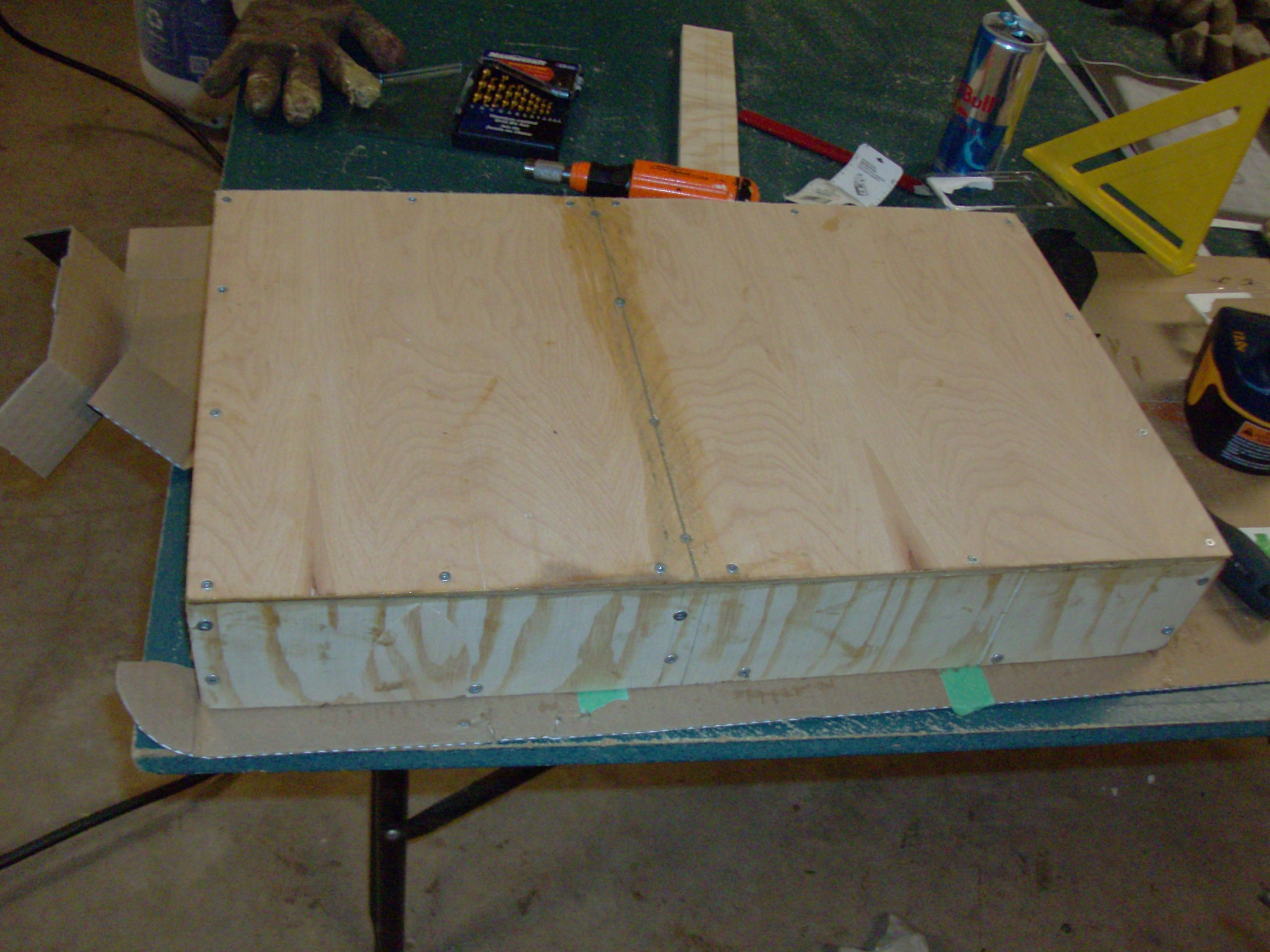 I recommend reinforcement ledgers at the top edges of the cajon. This gives an additional stability and you can fix the playing board with some screws. Otherwise heavier bass hits can stress it too much by and by (especially when it is rather thin and the edges are possibly not perfectly plane to each other).