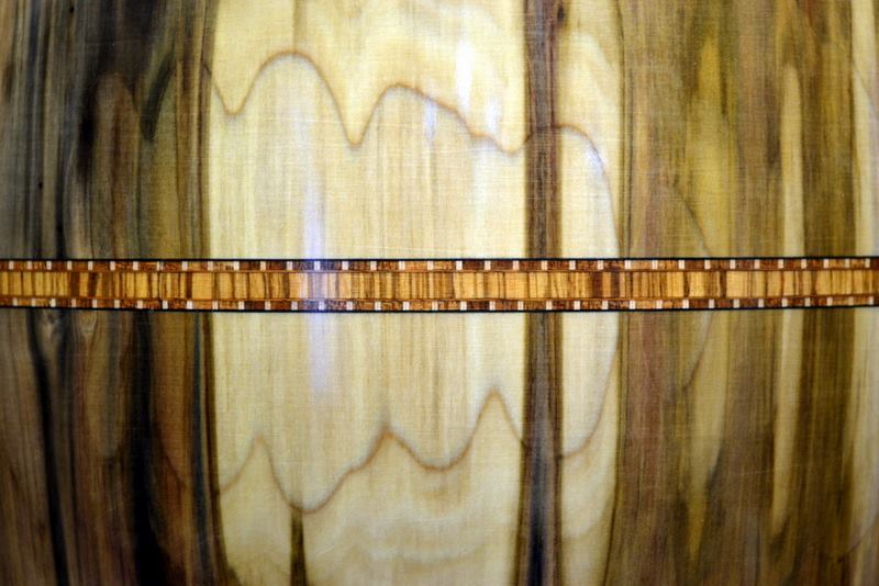 According to Manito, "the zebrawood/maple/mahogany bands are set into a perfectly sized groove and permanently set in place using state of the art adhesives that retain flexibilty and will never crack. The clear coat is also engineered to be very tough, yet flexible and it completely seals the band underneath it. The band, the polymers and the shell all move evenly together and will never try to separate".